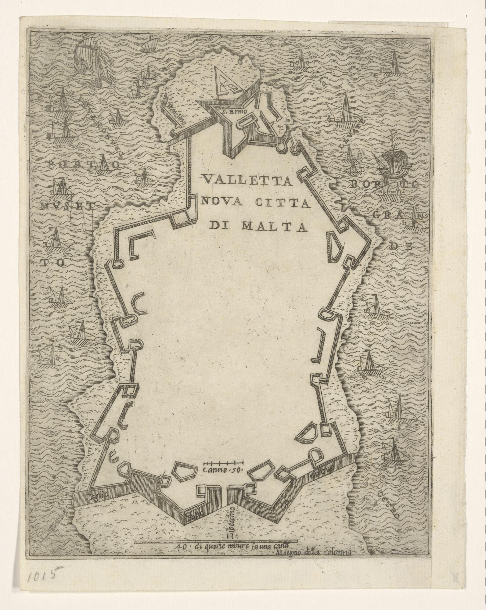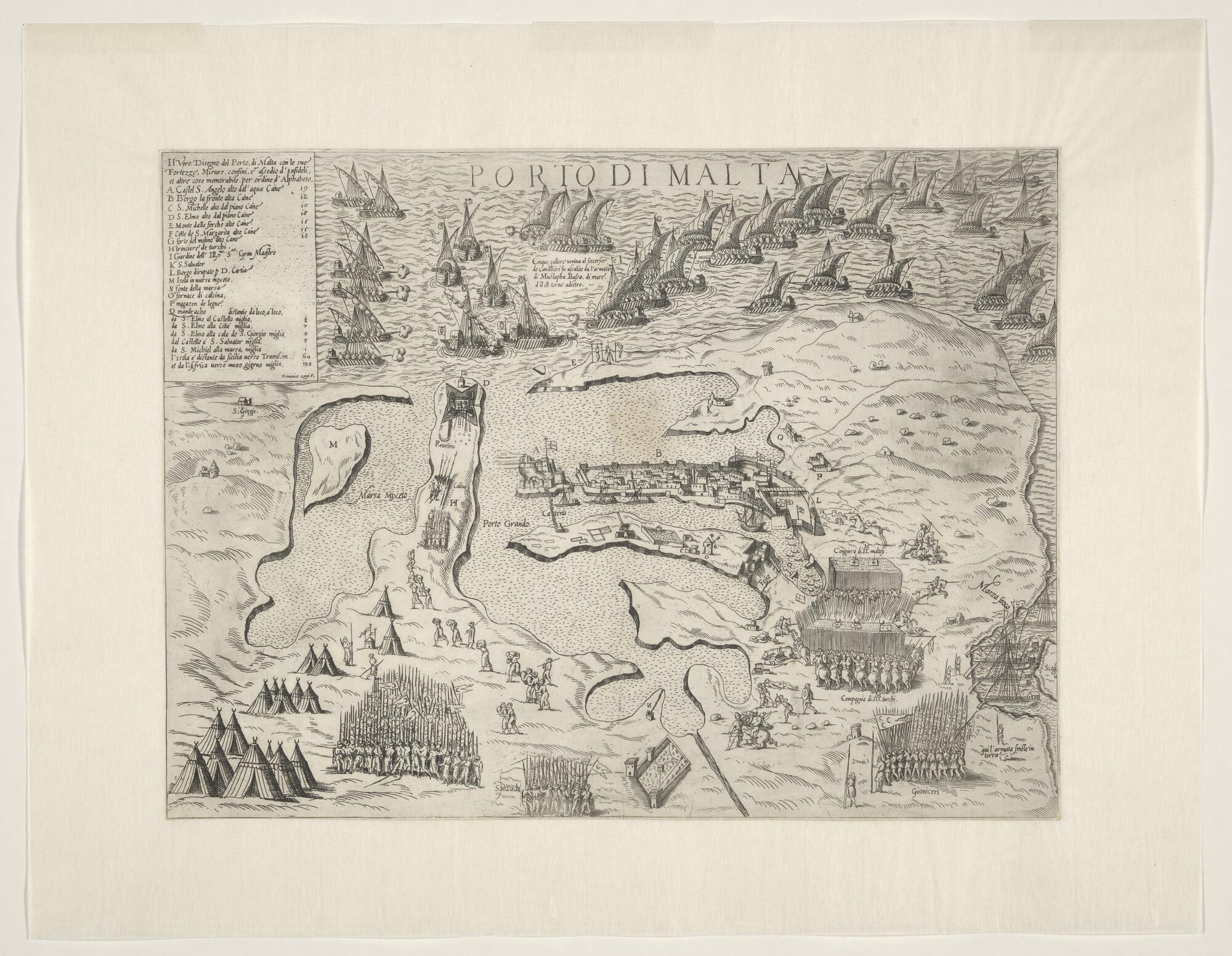 Kaart van Valetta op het eiland Malta door Domenico ...
