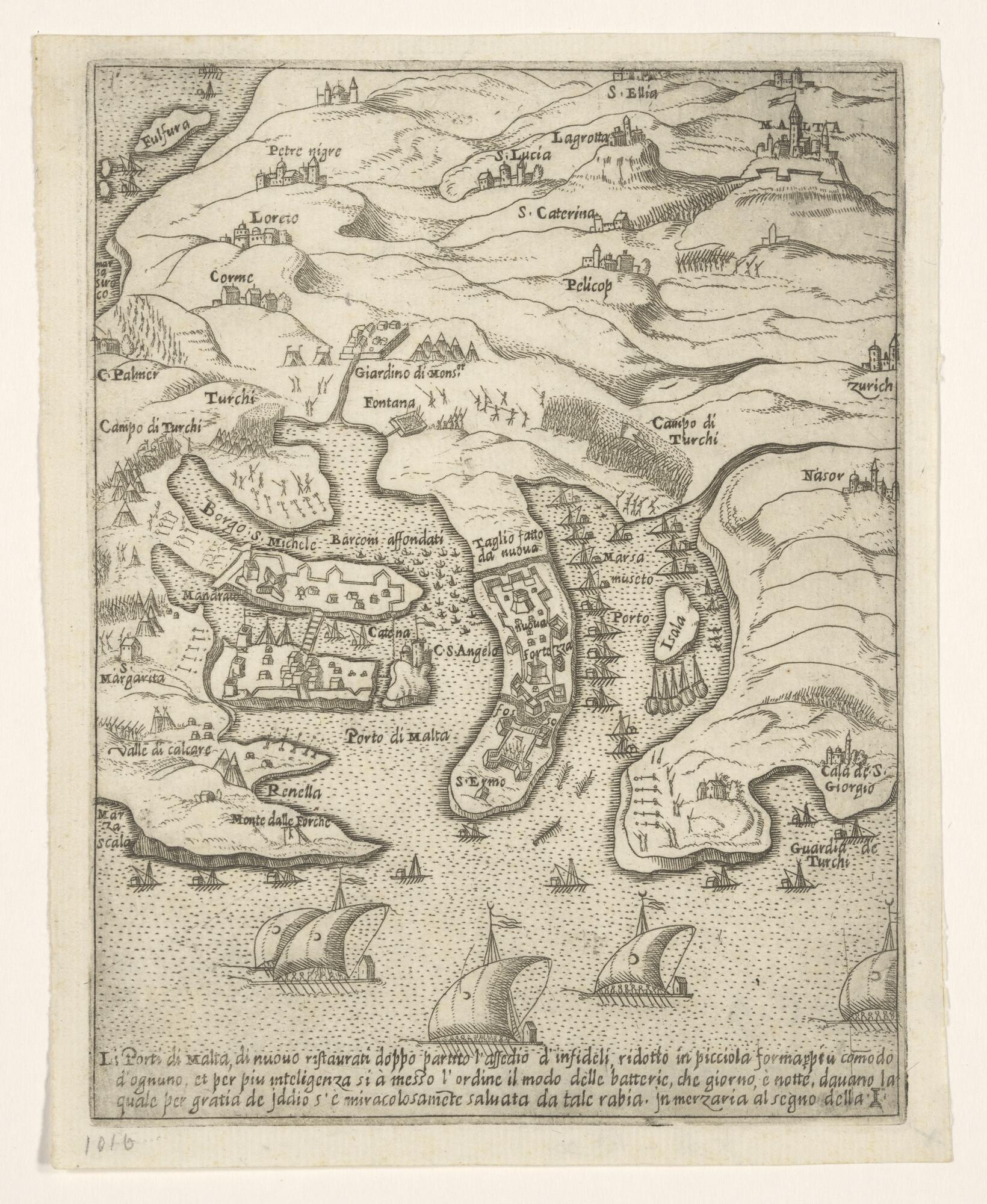 Kaart van de door Turken belegerde haven van het eil...