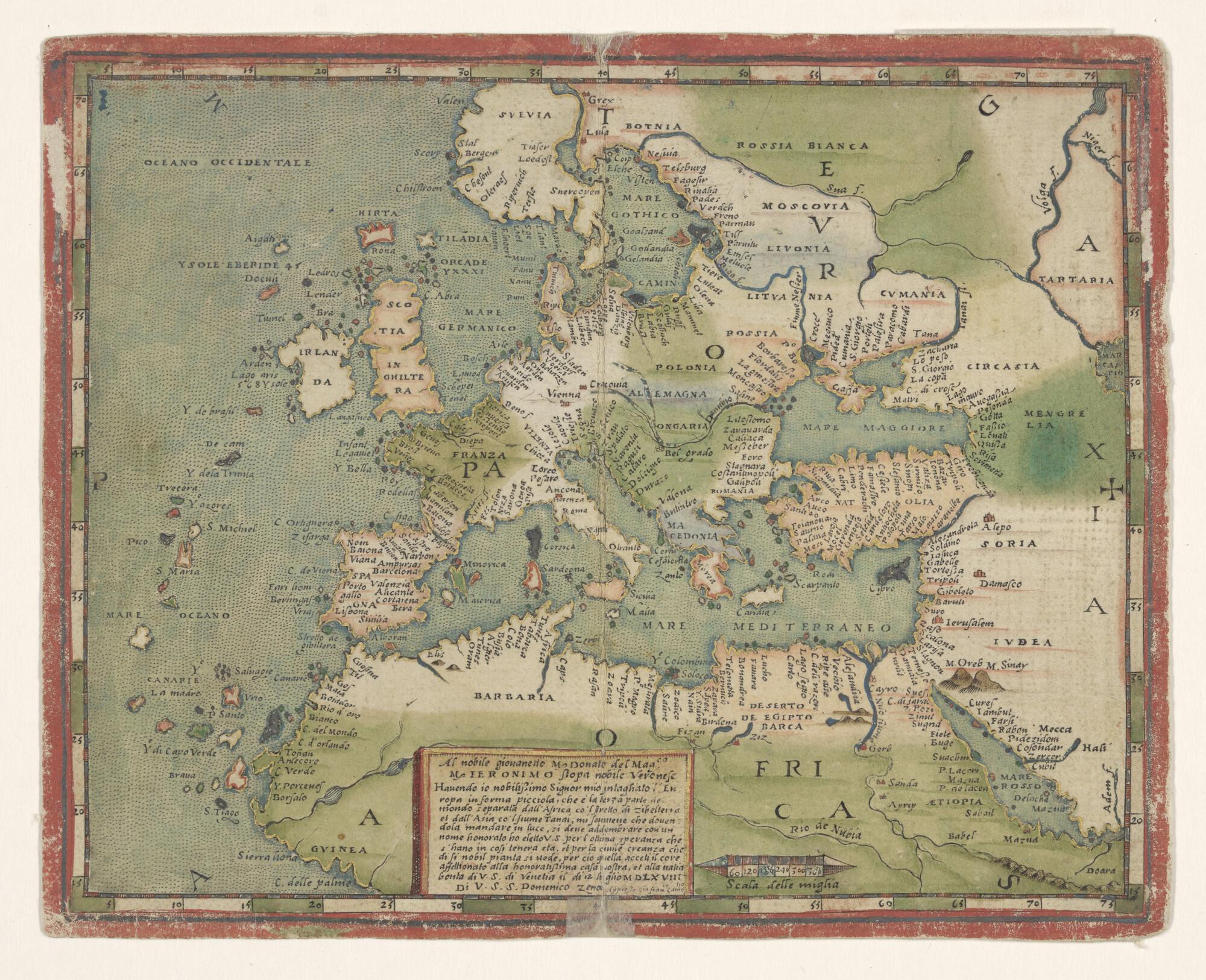 Handschriftkaartje van Europa en Noord-Afrika door D...