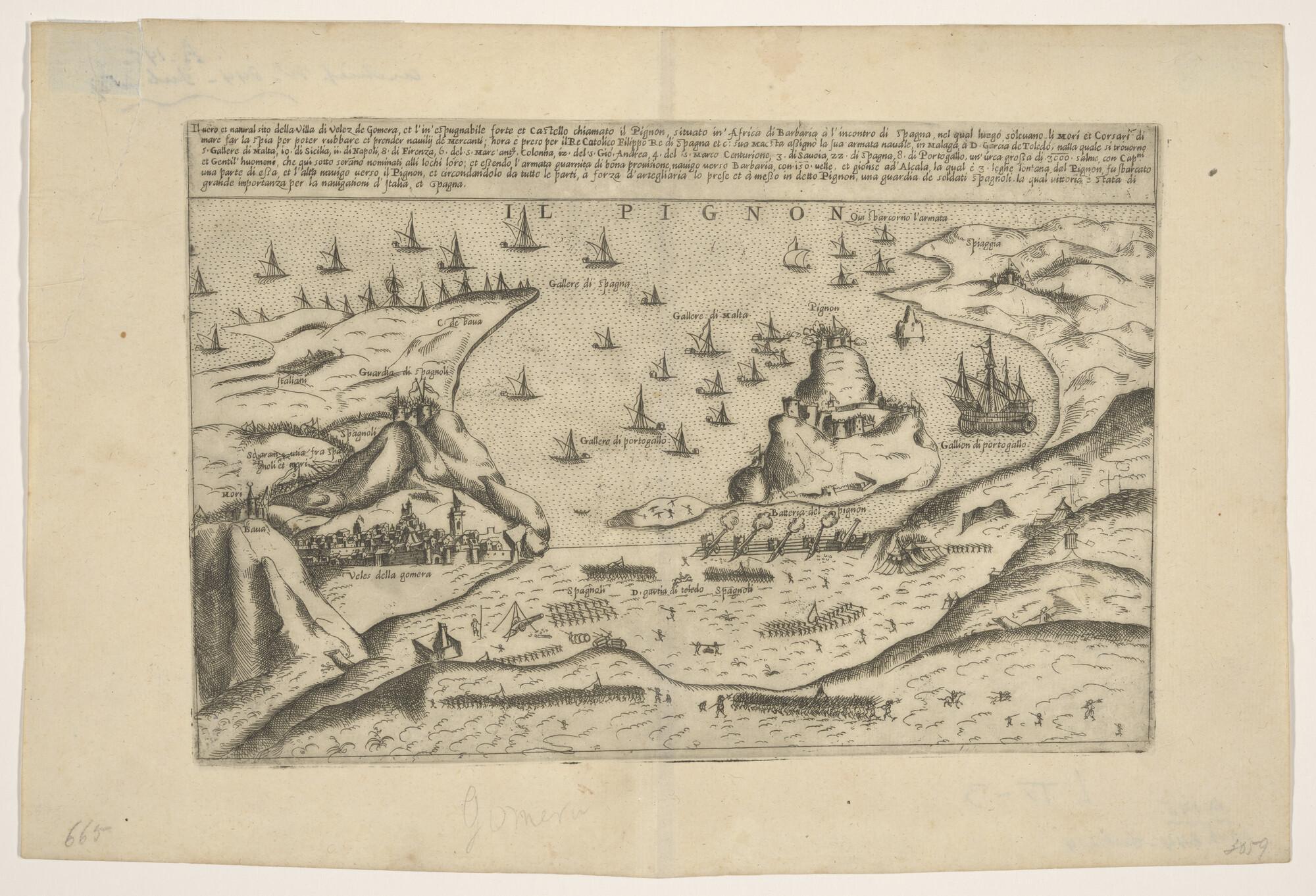 Kaart van een beleg van de stad Gomera door Spaanse ...