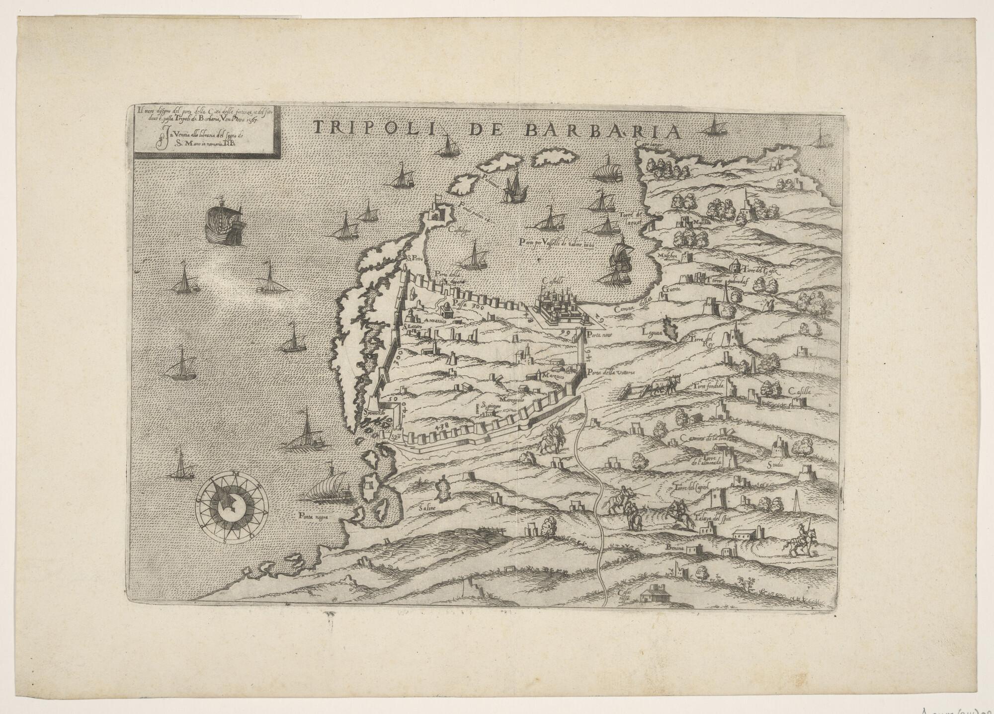 Kaart van de haven van Tripoli in Barbarije, en een ...