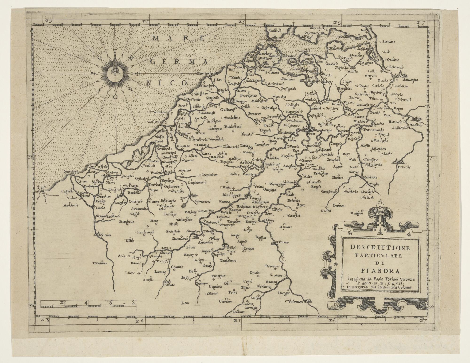 Kaart van Vlaanderen door Paolo de Forlani (werkzaam...