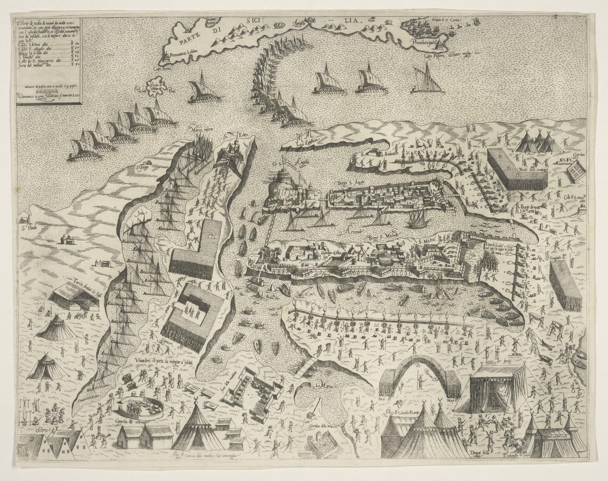 Kaart van het eiland Malta in 1565 door Domenico Zen...