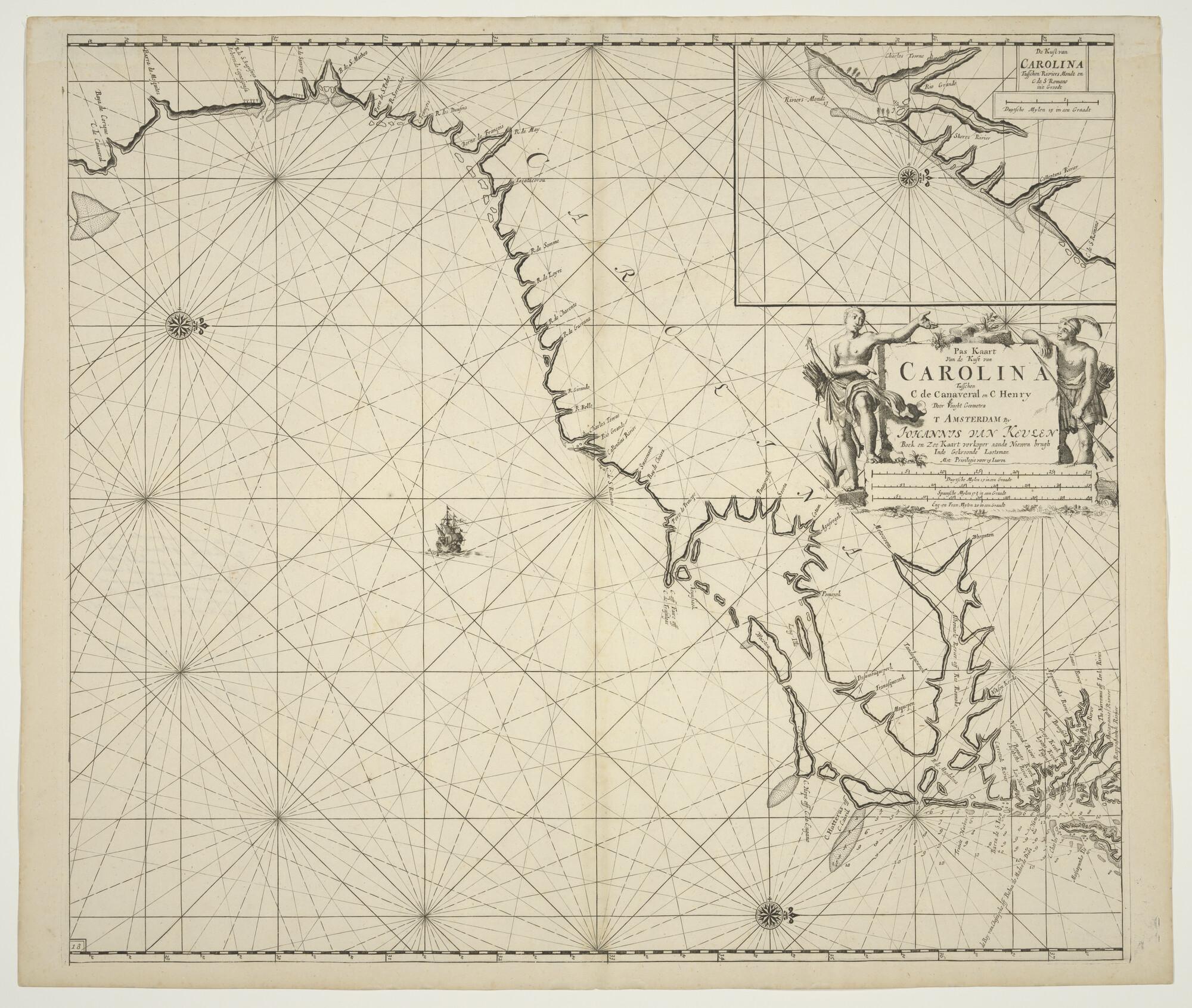 Paskaart van de kust van Carolina tussen Kaap Canave...