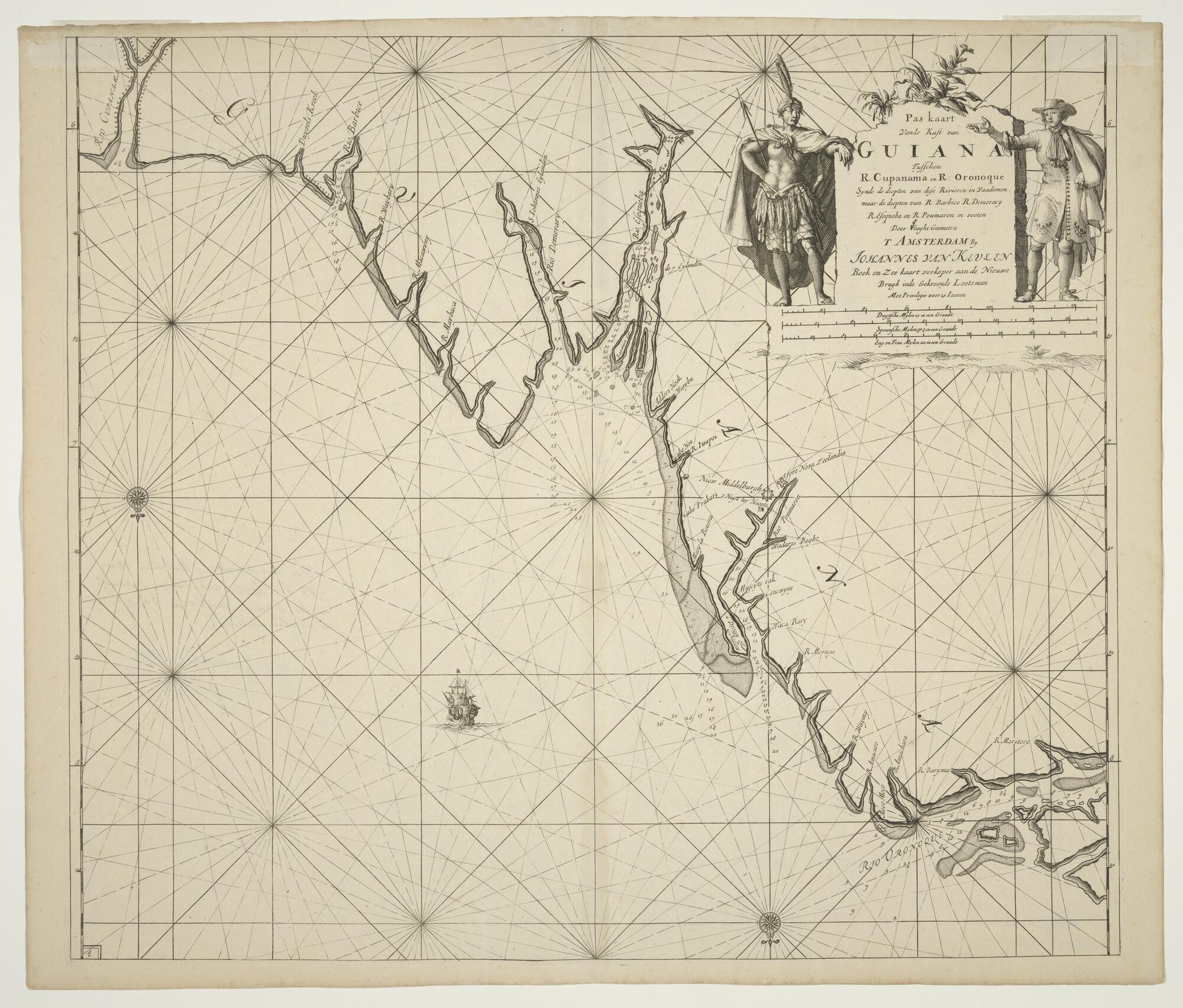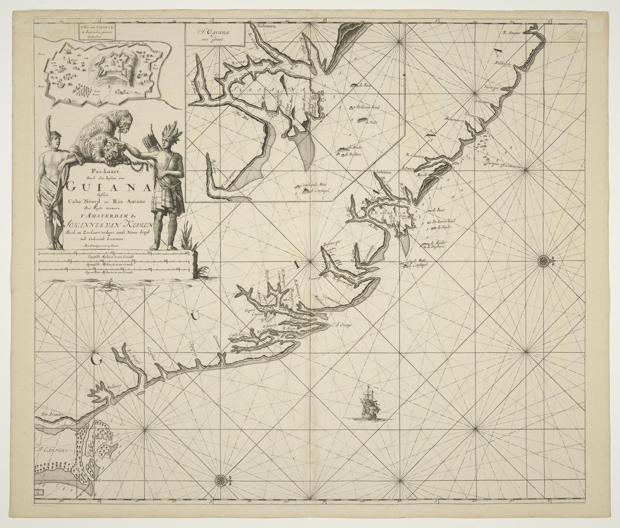 Paskaart van de kust van Guiana door Claas Jansz. Vo...