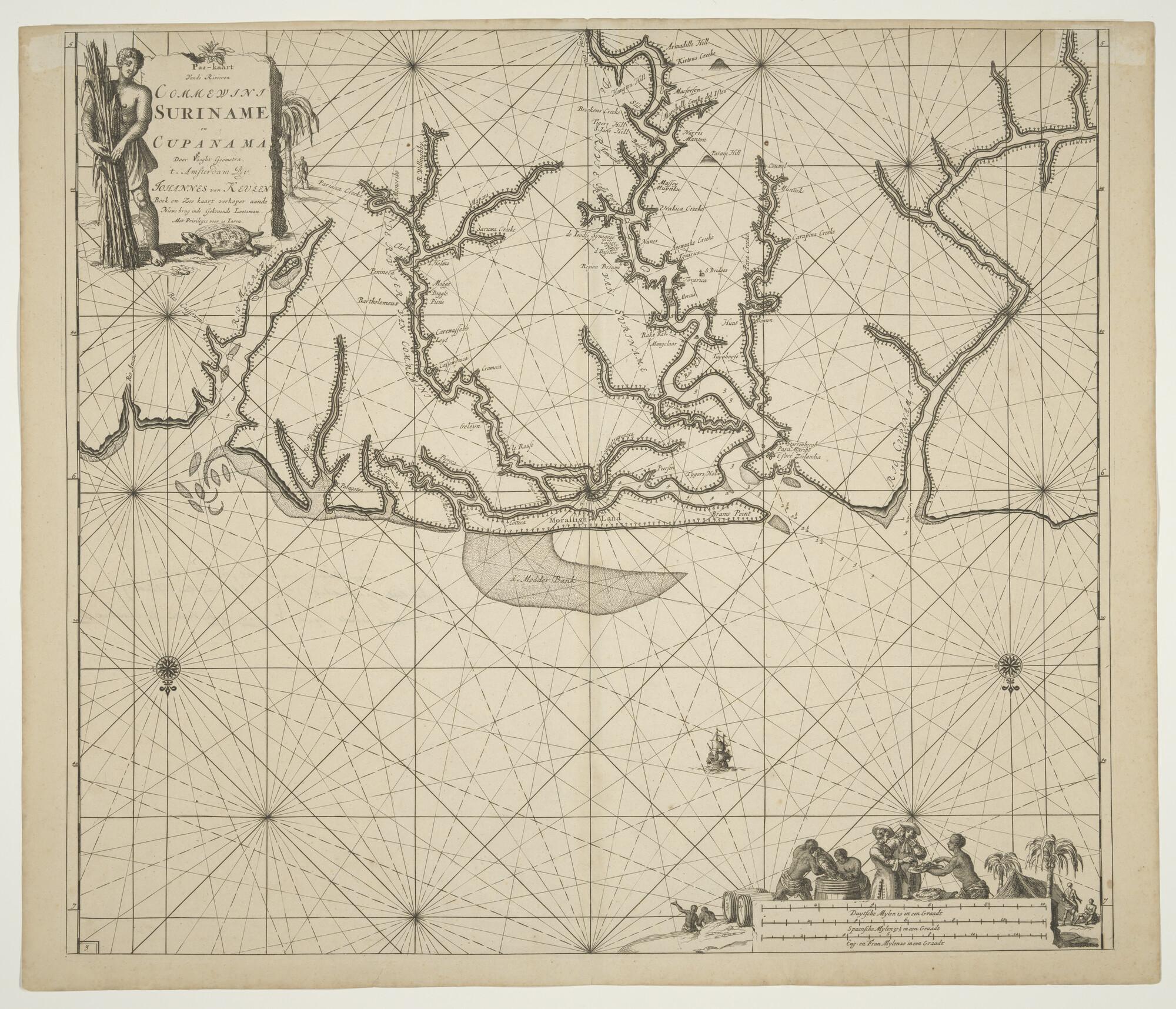 Paskaart van de rivieren Commewijne, Suriname en Cup...