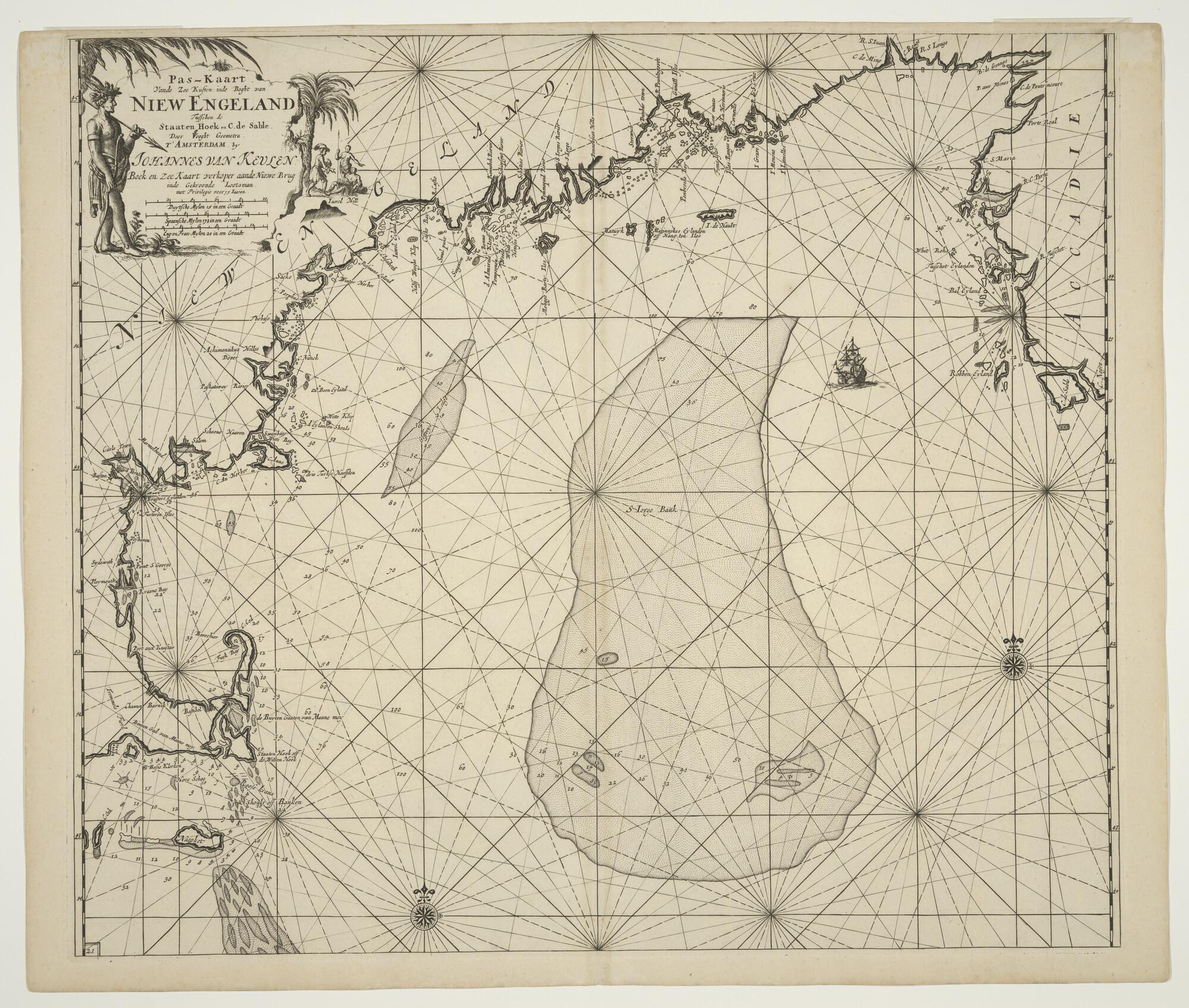 Paskaart van de kust in de bocht van Nieuw Engeland ...