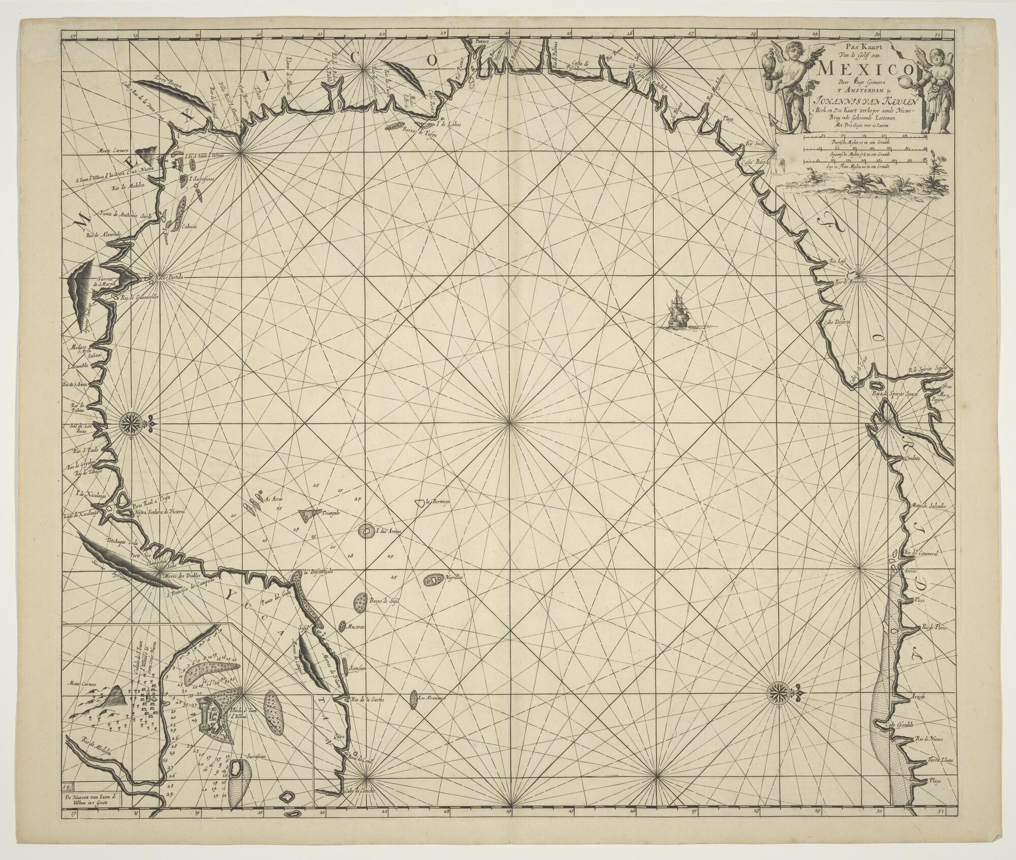 Paskaart van de Golf van Mexico, door Claas Jansz. V...
