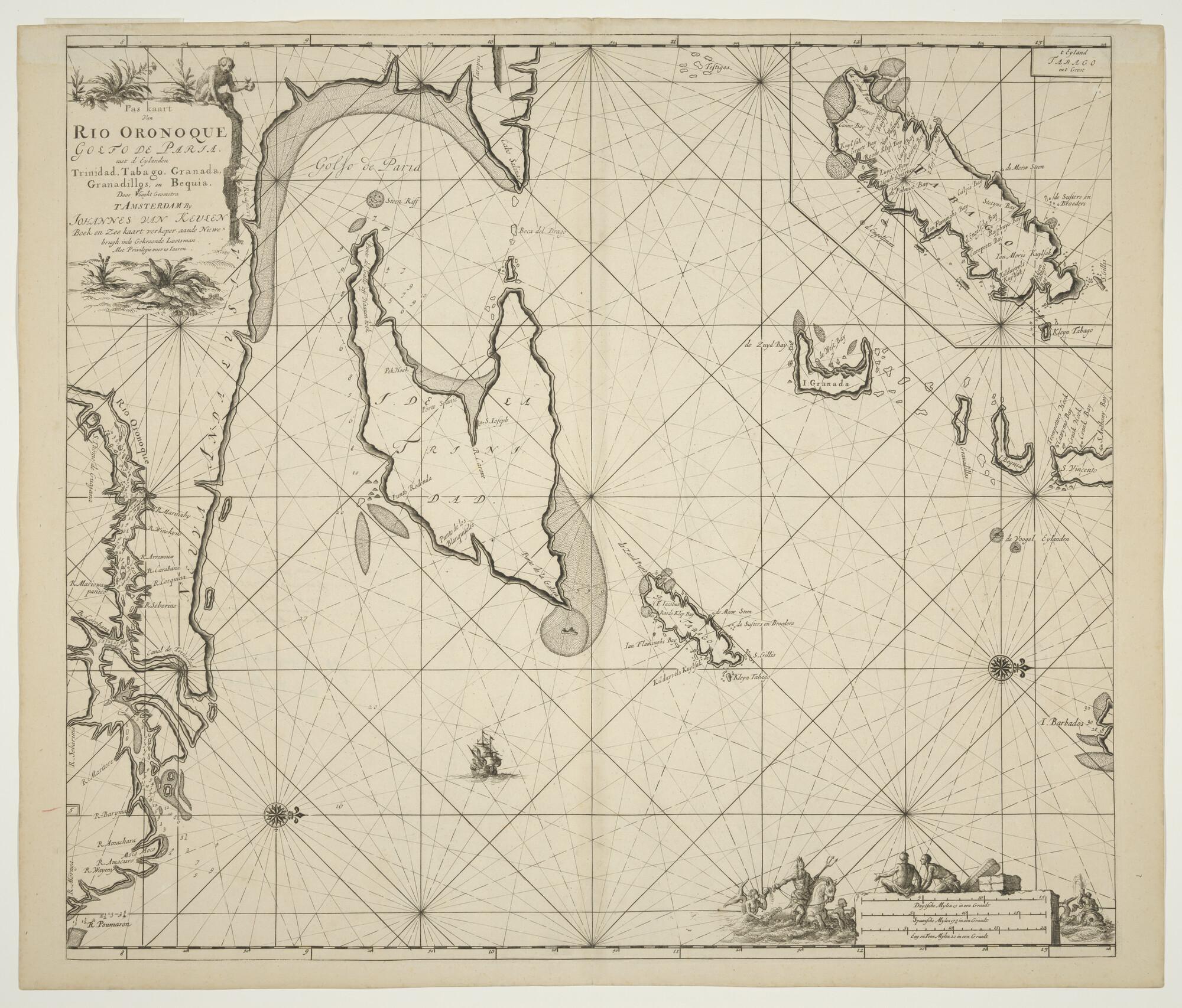 Paskaart van de Orinoco Rivier, de Golf van Para en ...