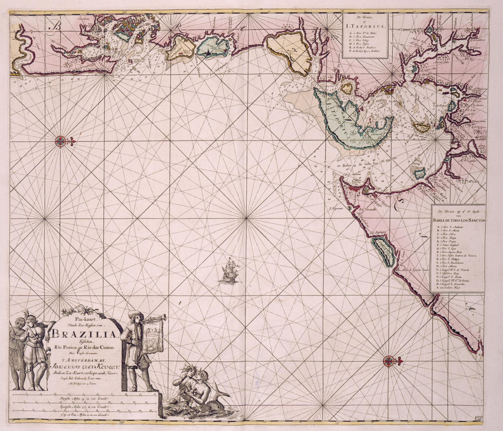 Paskaart van de kust van Brazilië, tussen Rio Ponica...