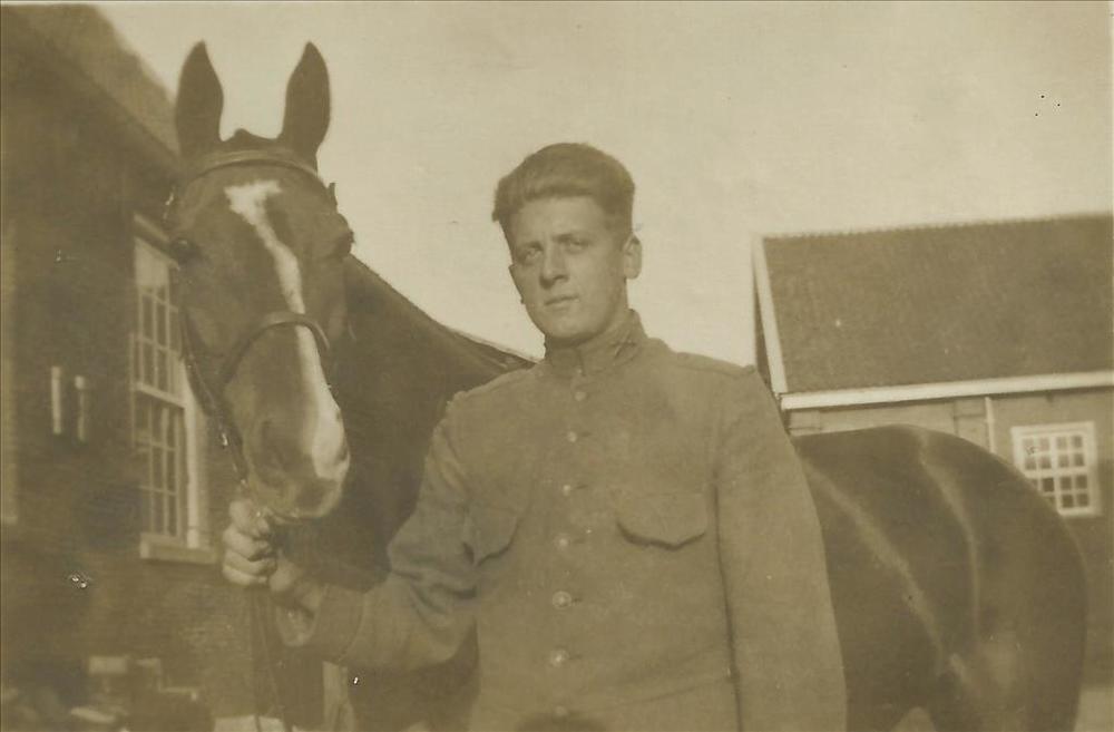 Soldaat Jan van Wieringen houdt paard aan halster