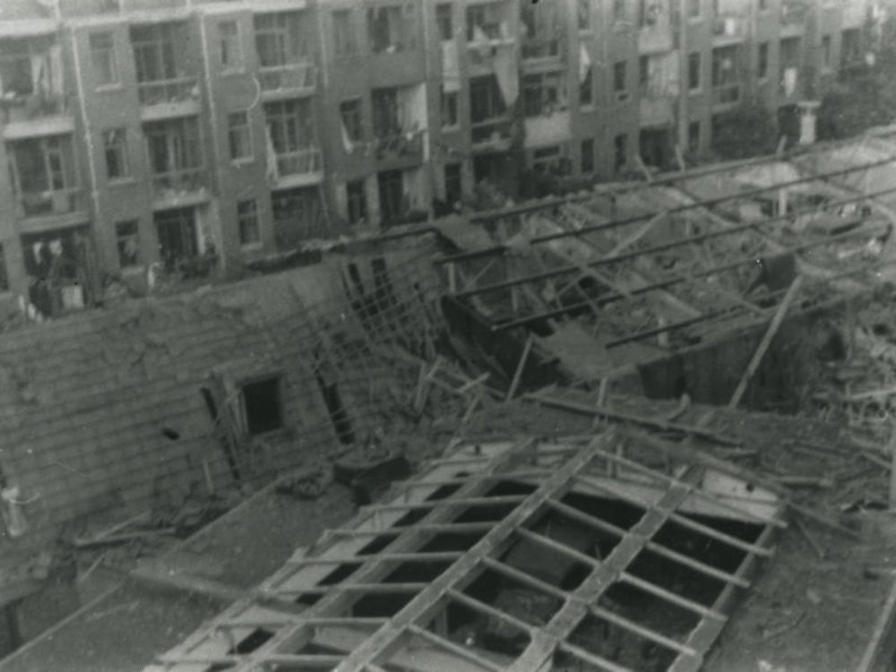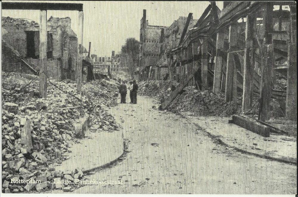 Rotterdam , Lange Pannekoekstraat na het bombardemen...