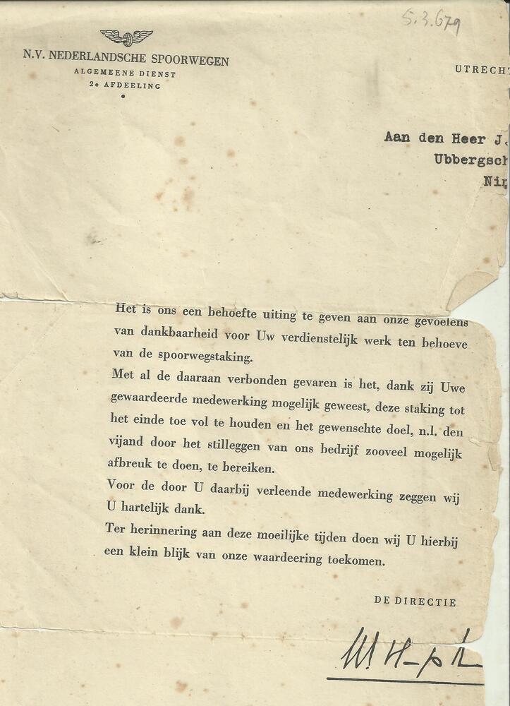 Brief (beschadigd) van N.S.