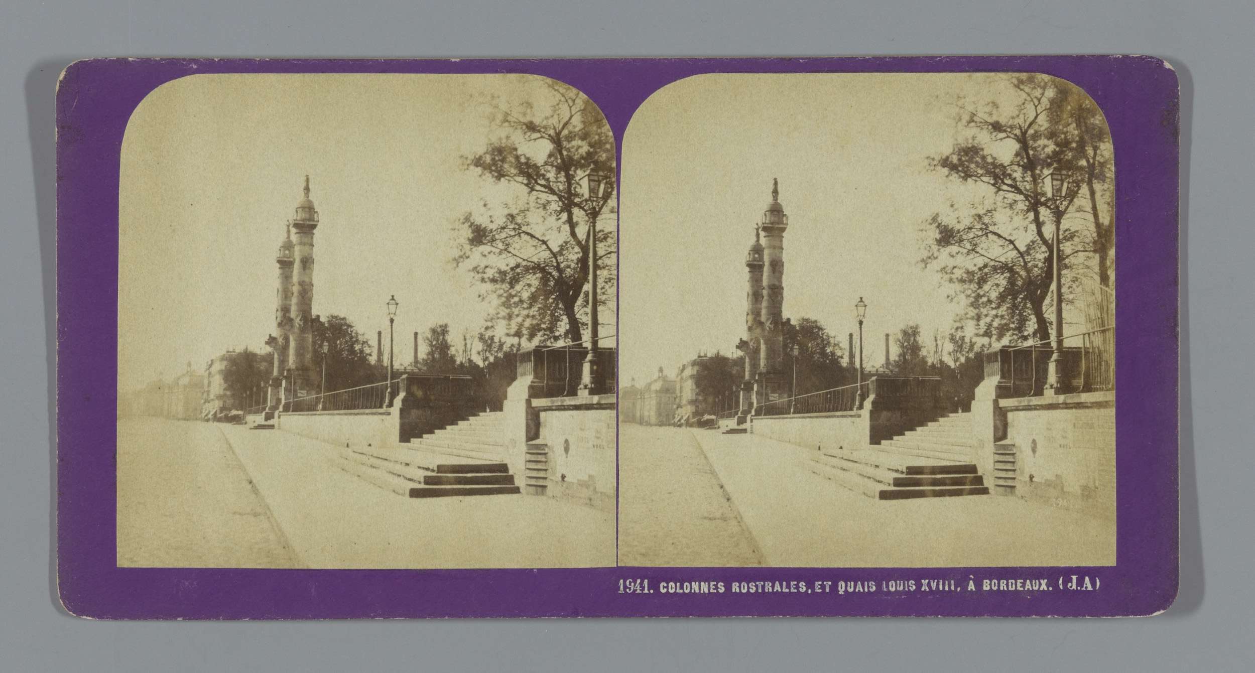 Gezicht op twee rostrazuilen te Bordeaux