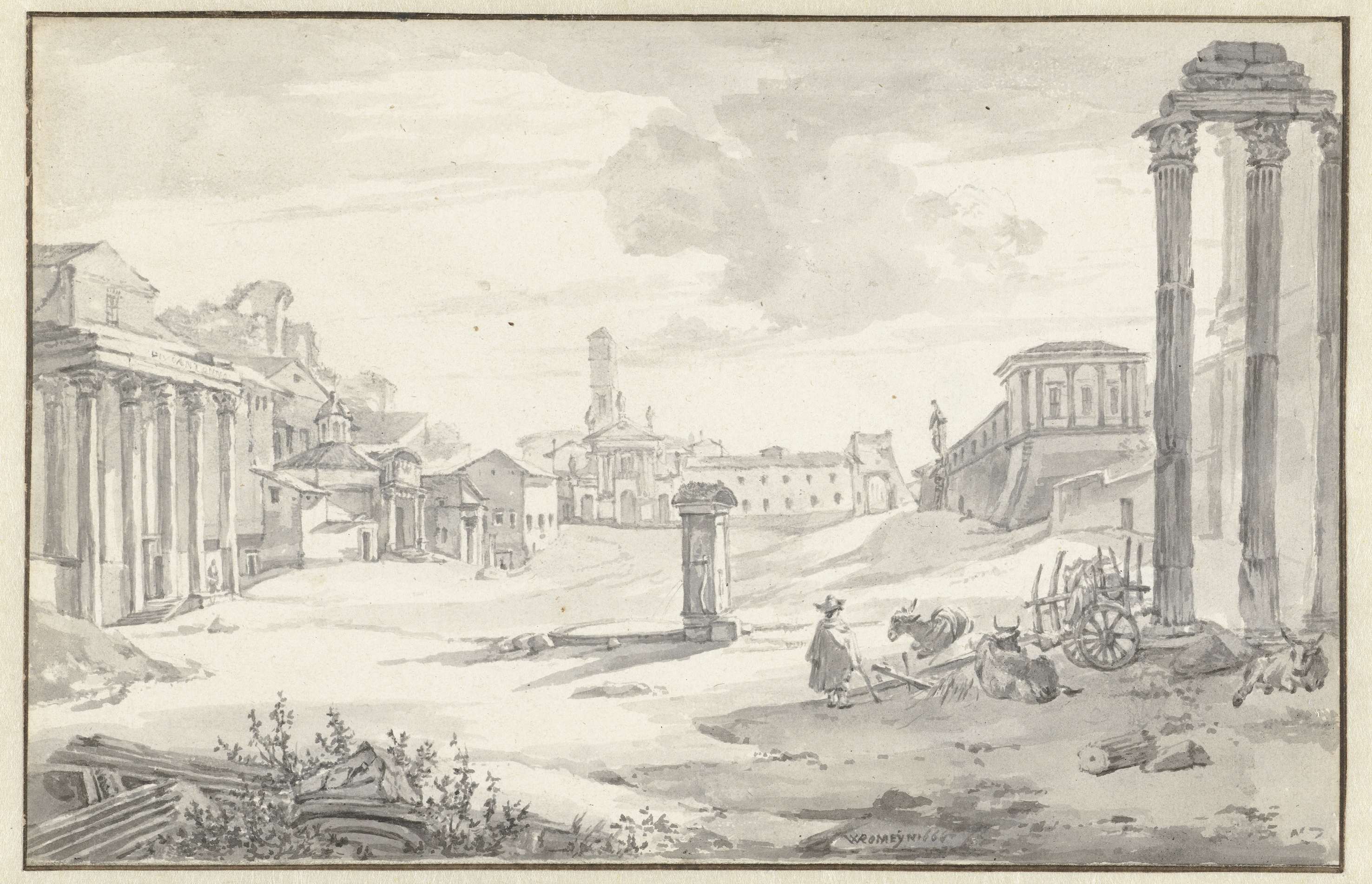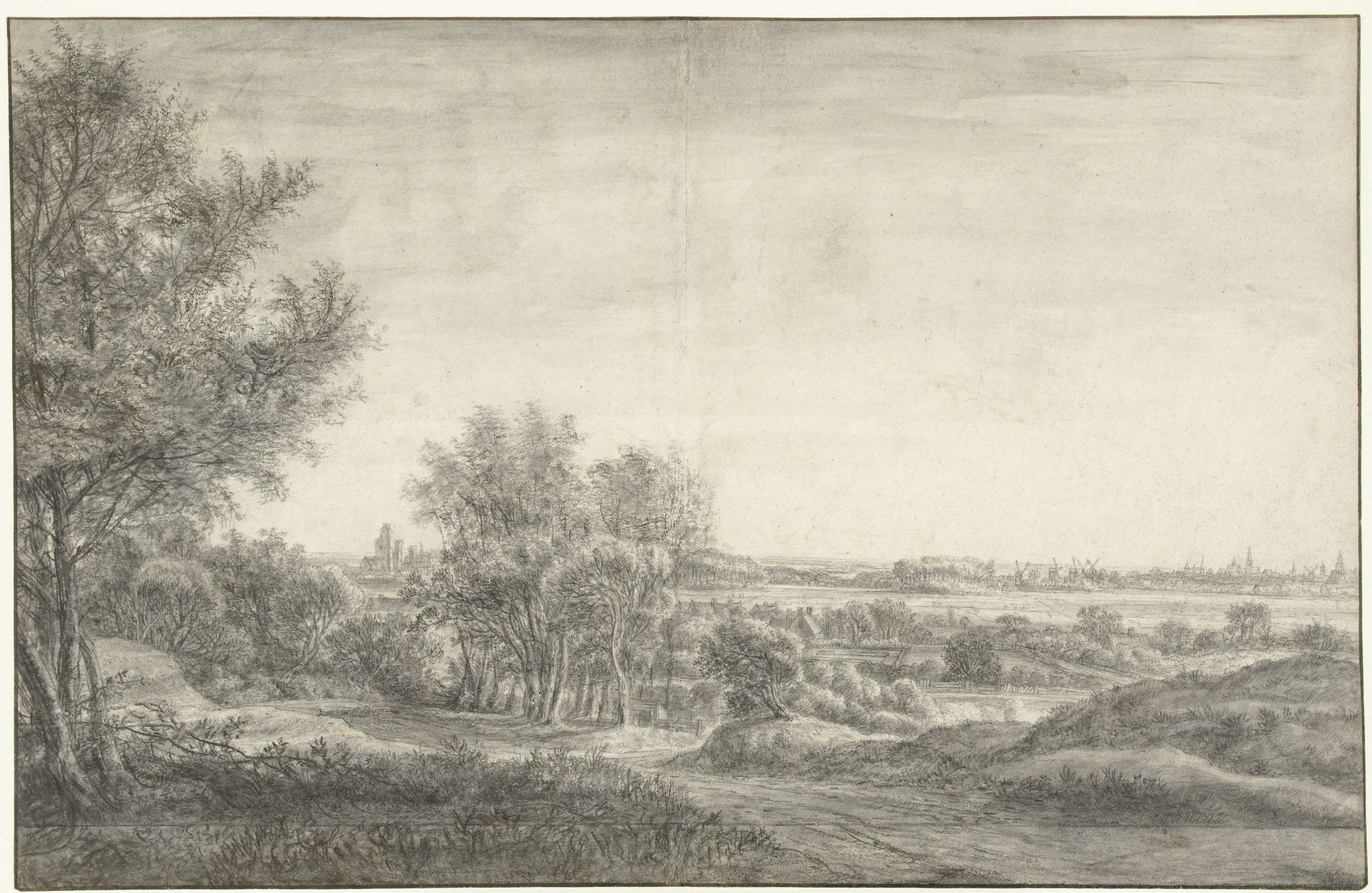 Gezicht vanuit de duinen op Haarlem met ruïne van he...