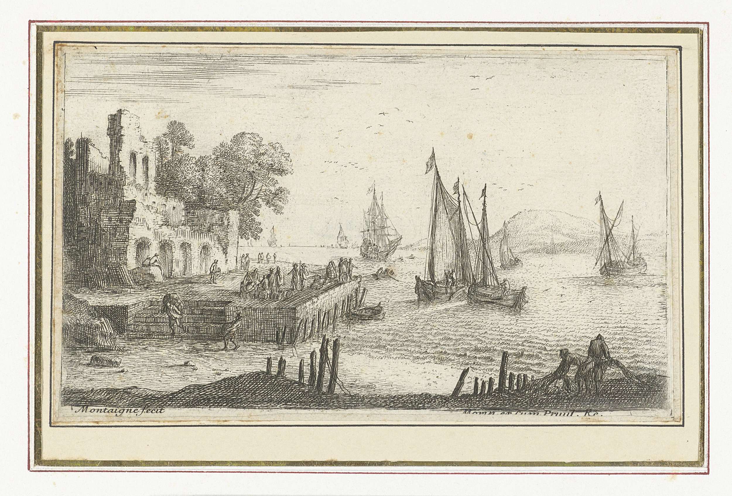 Italiaanse haven met twee schepen en twee geruïneerd...