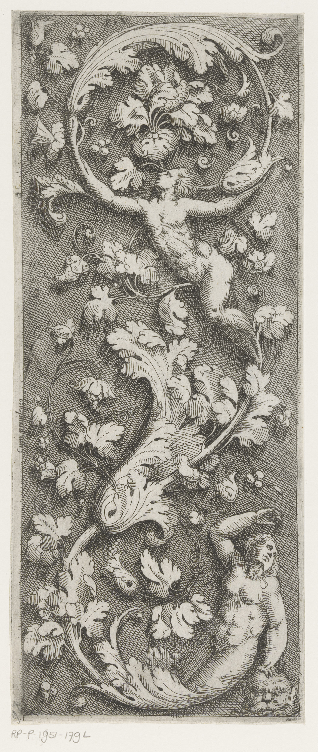 Fries met arabesken en twee naakte figuren uitlopend...