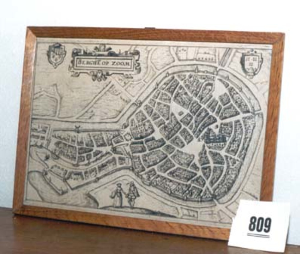 Topografische prent "Plattegrond van de stad Bergen ...