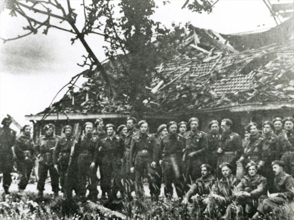 25 Britse en Canadese militairen voor ruïne van boer...