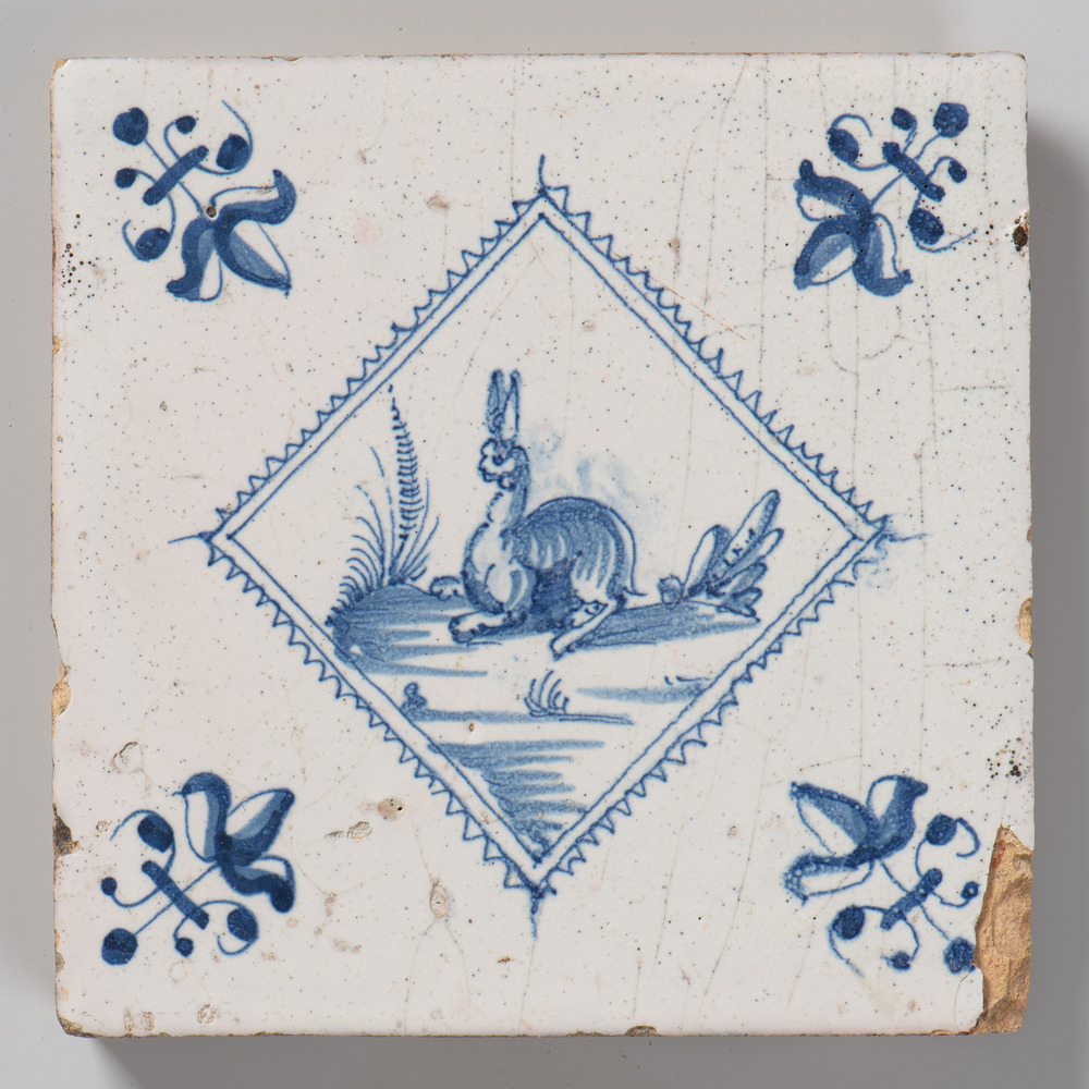 tegel van keramiek met tinglazuur, voorstellende: ha...