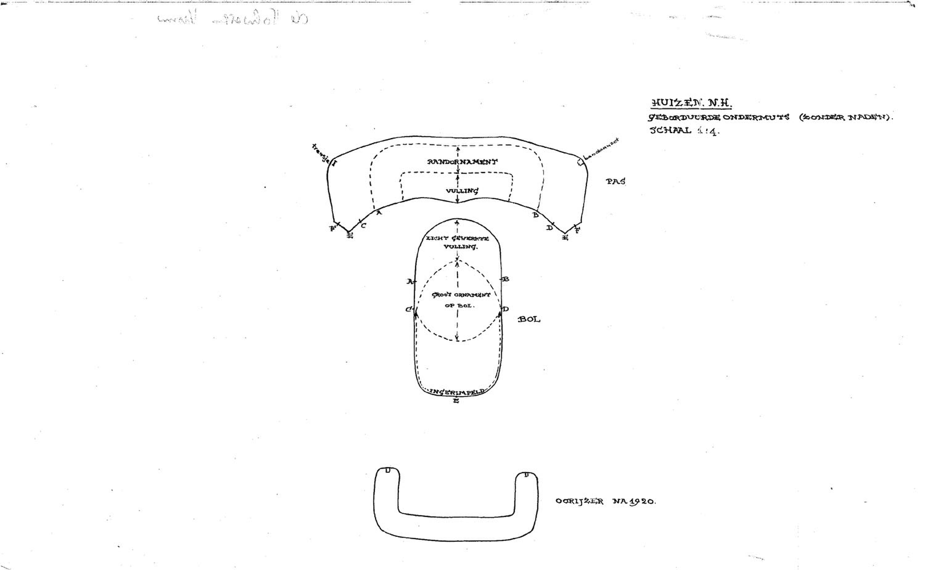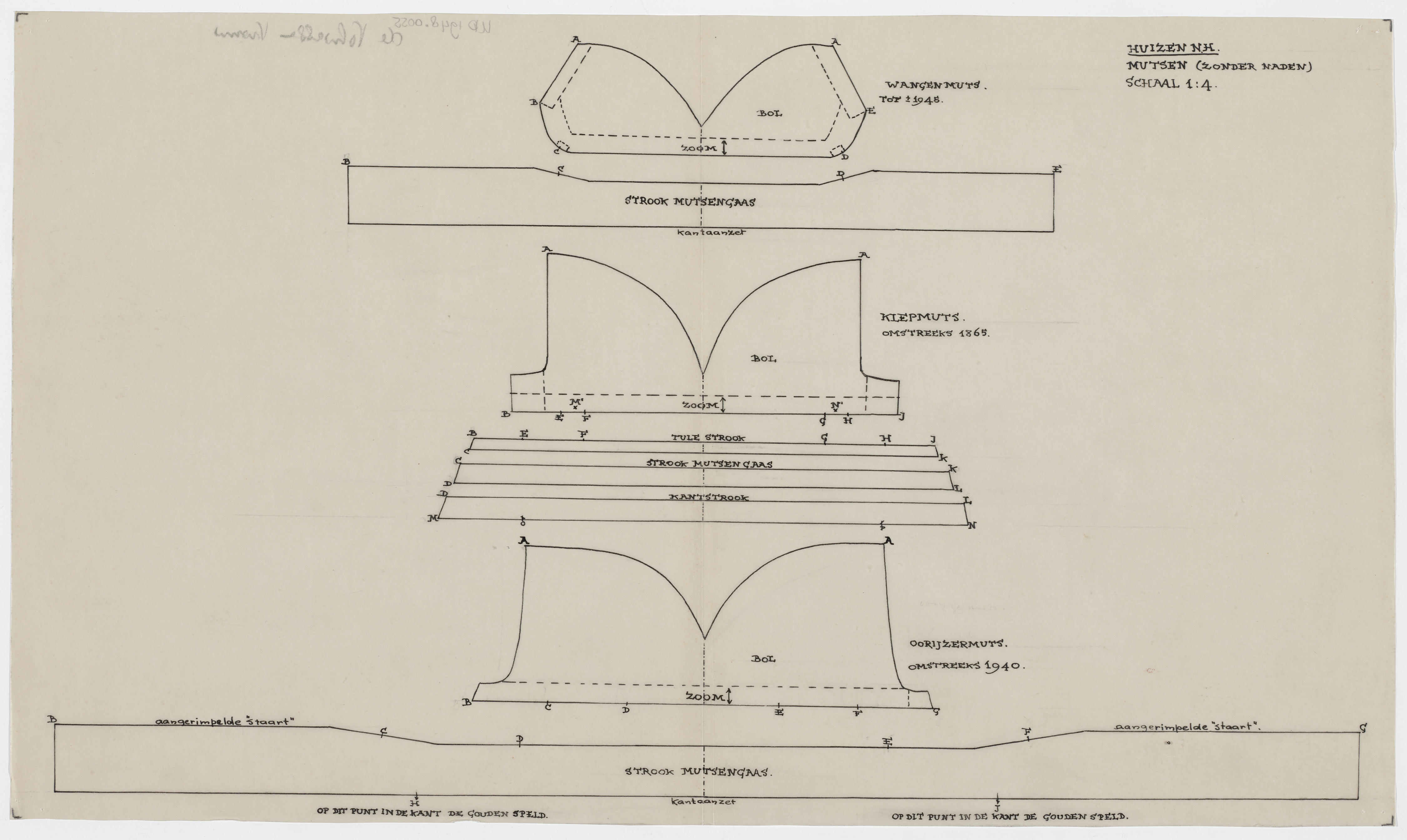 Patroontekening kornet- en ondermuts, vrouw Huizen (...