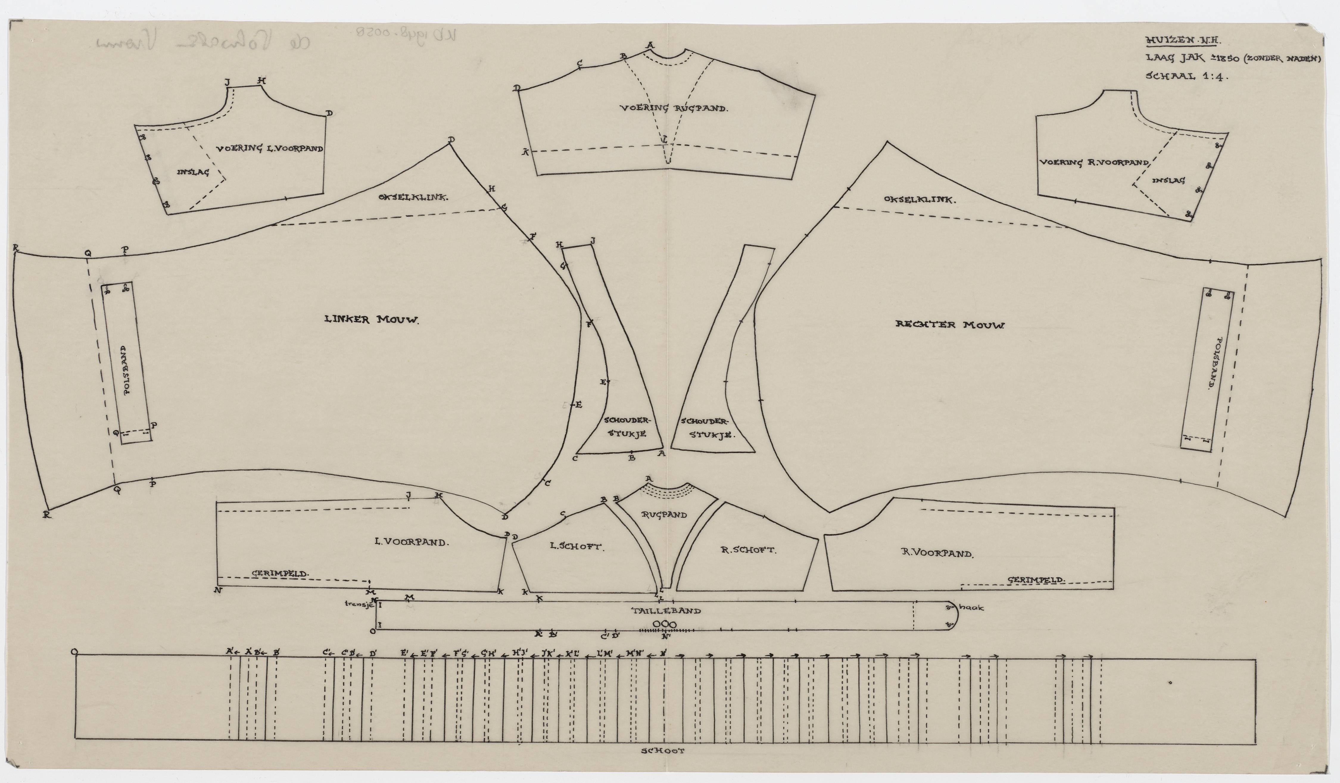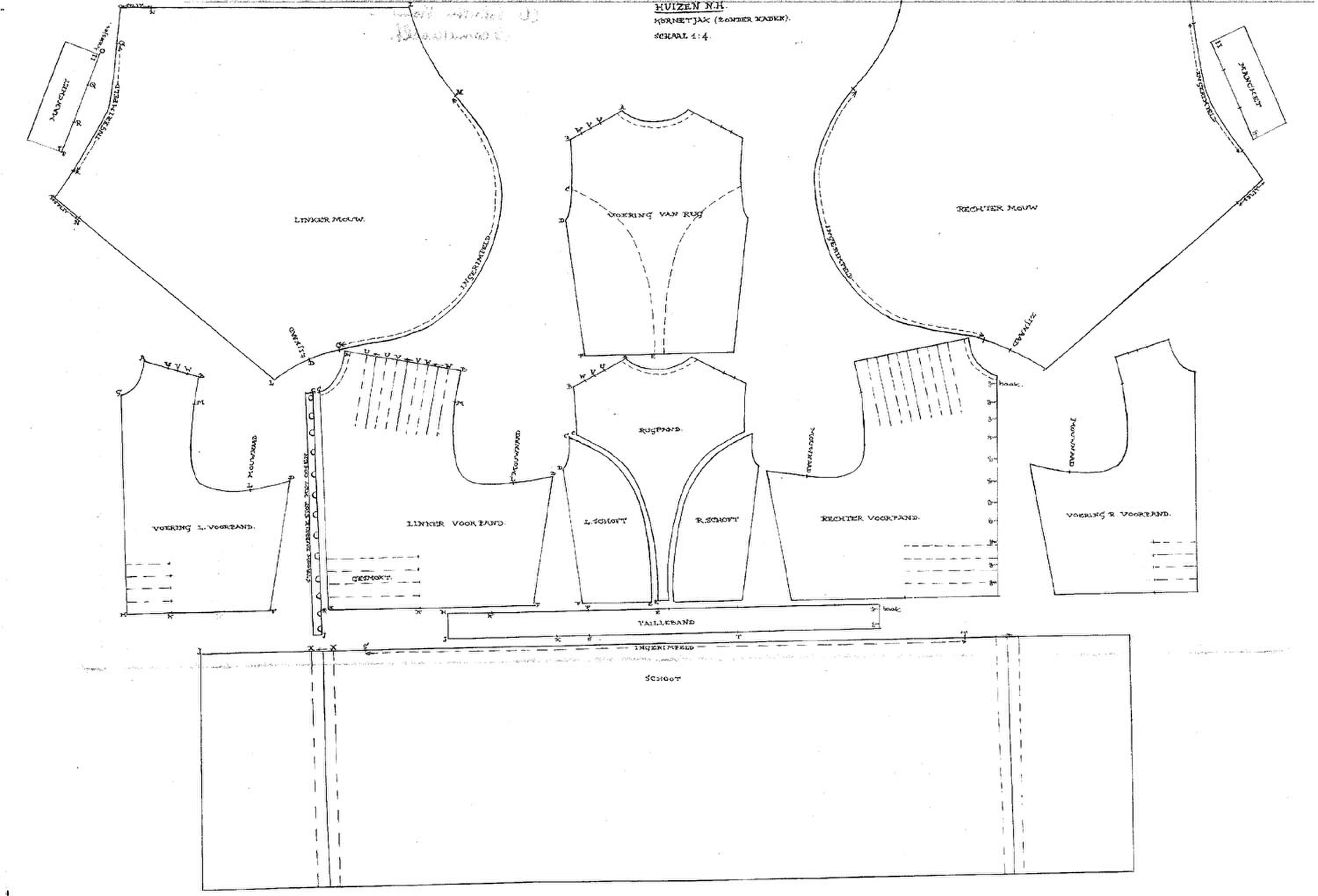 Patroontekening laag jak, vrouw Huizen (patroonteken...