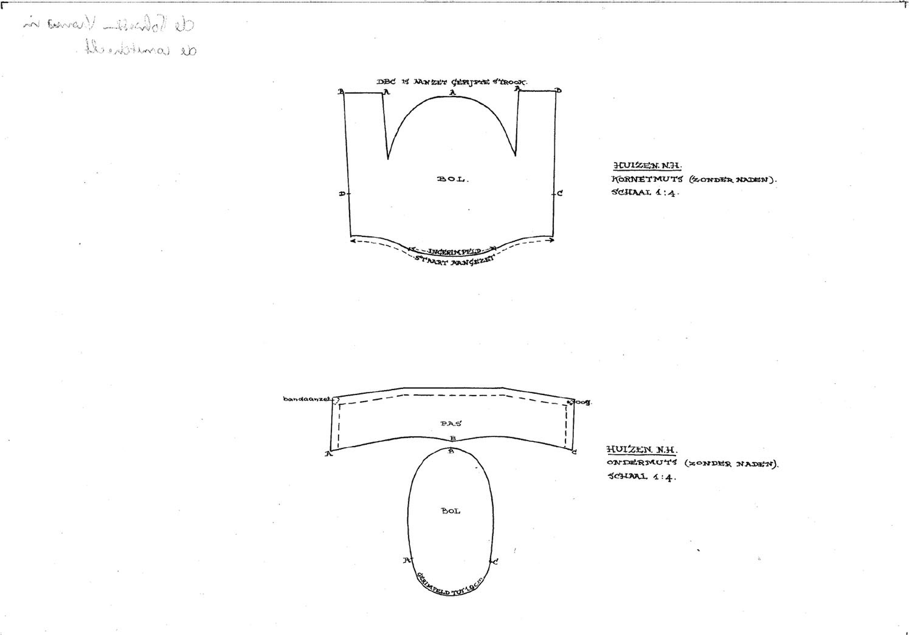 Patroontekeningen mutsen, vrouw Huizen (patroonteken...