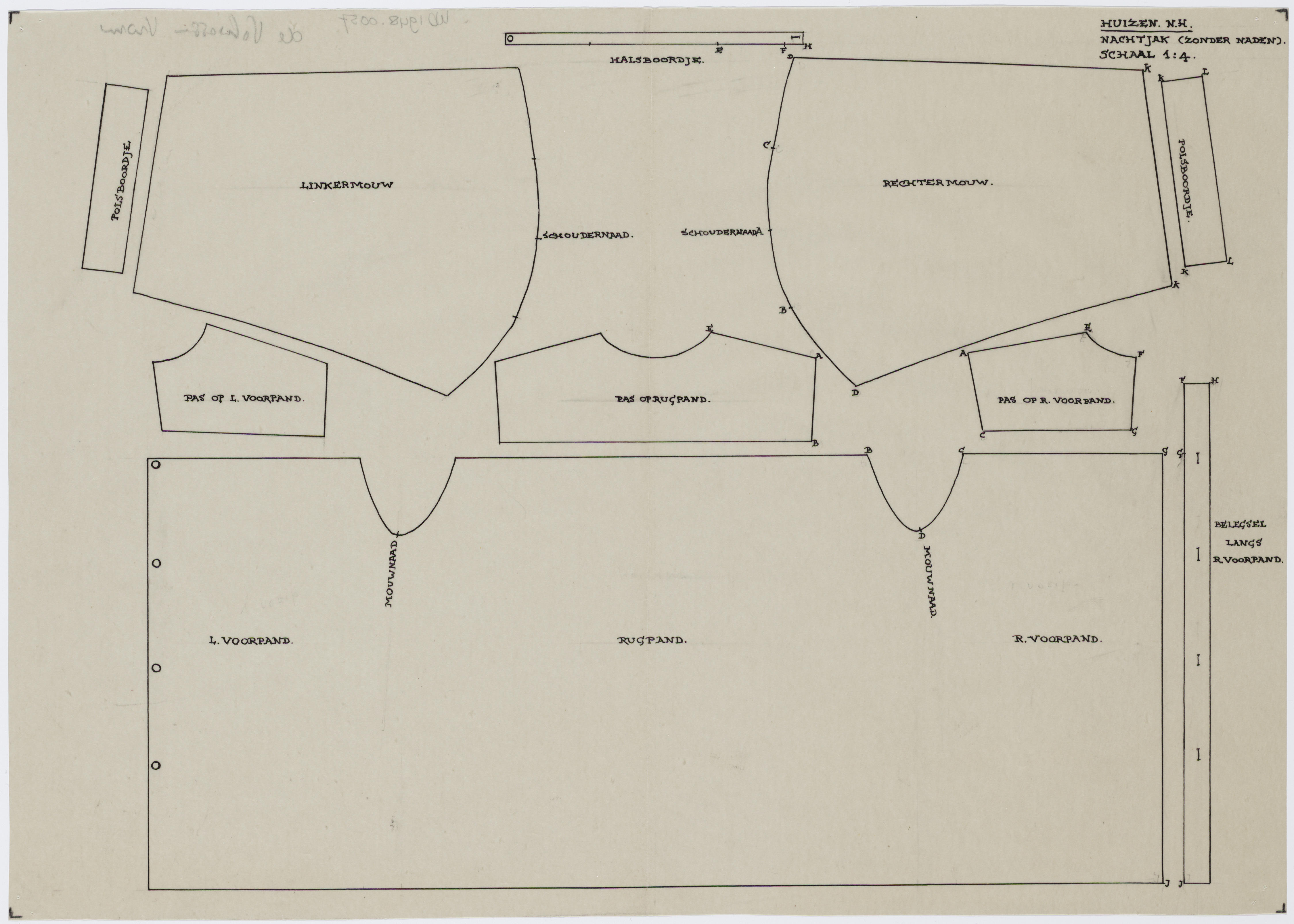 Patroontekening van nachtjak, vrouw Huizen (patroont...