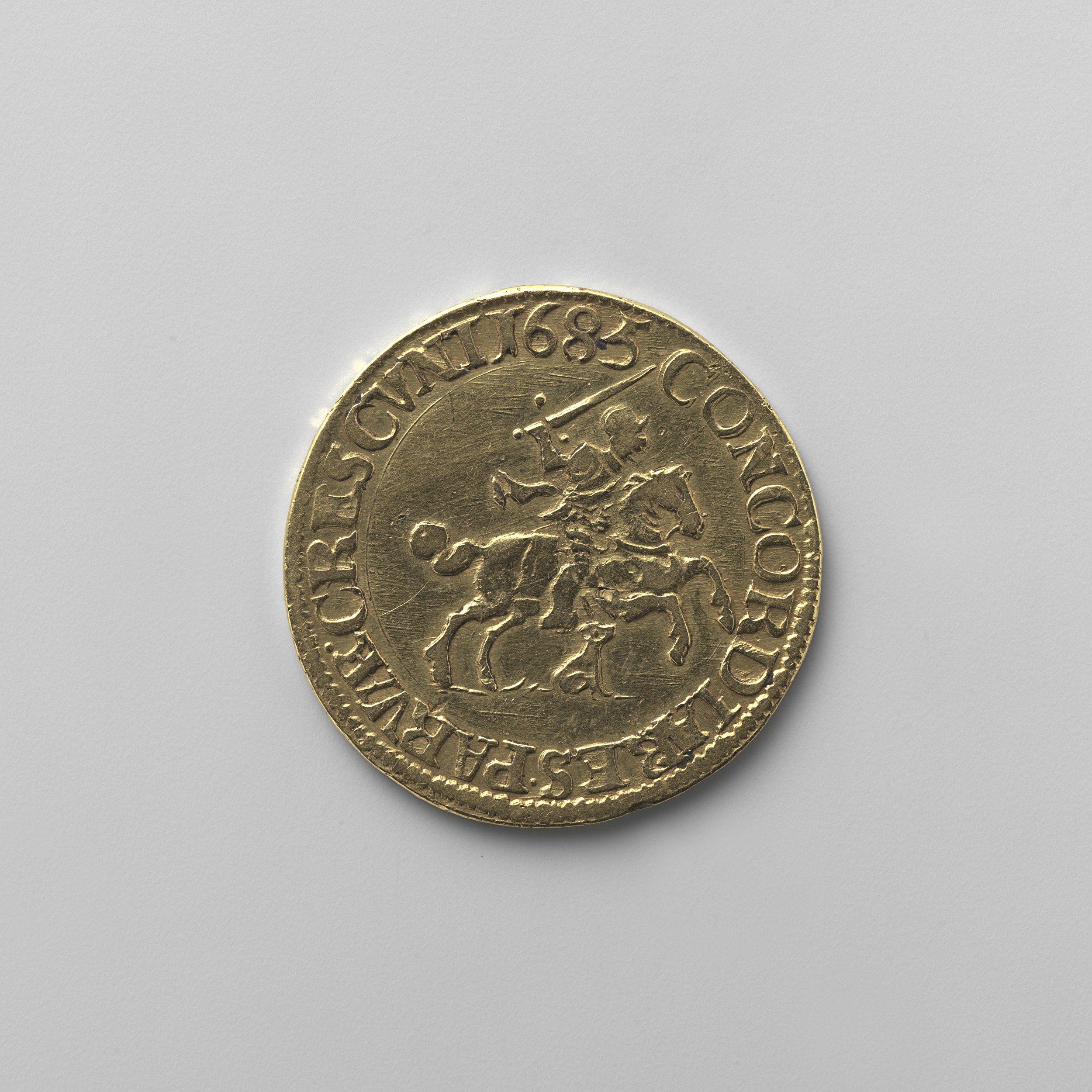 Gouden afslag van rijderschelling van Deventer, 1685