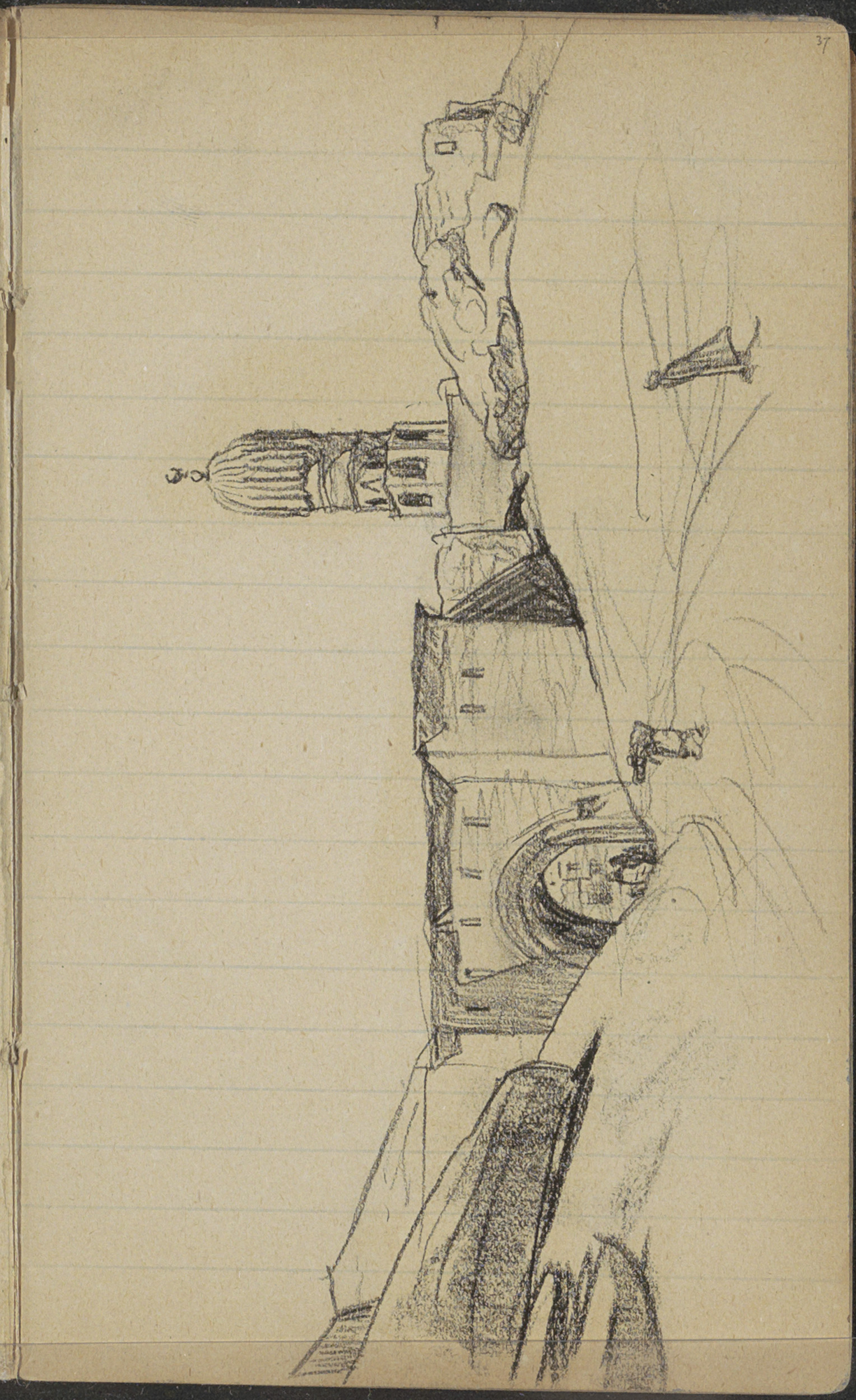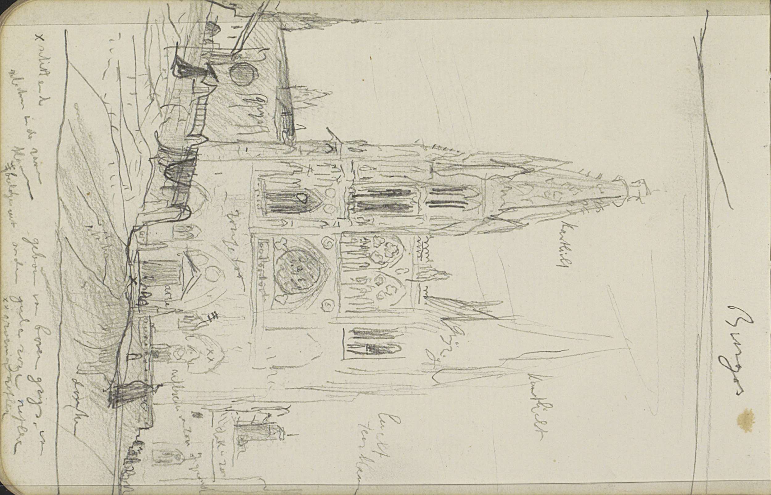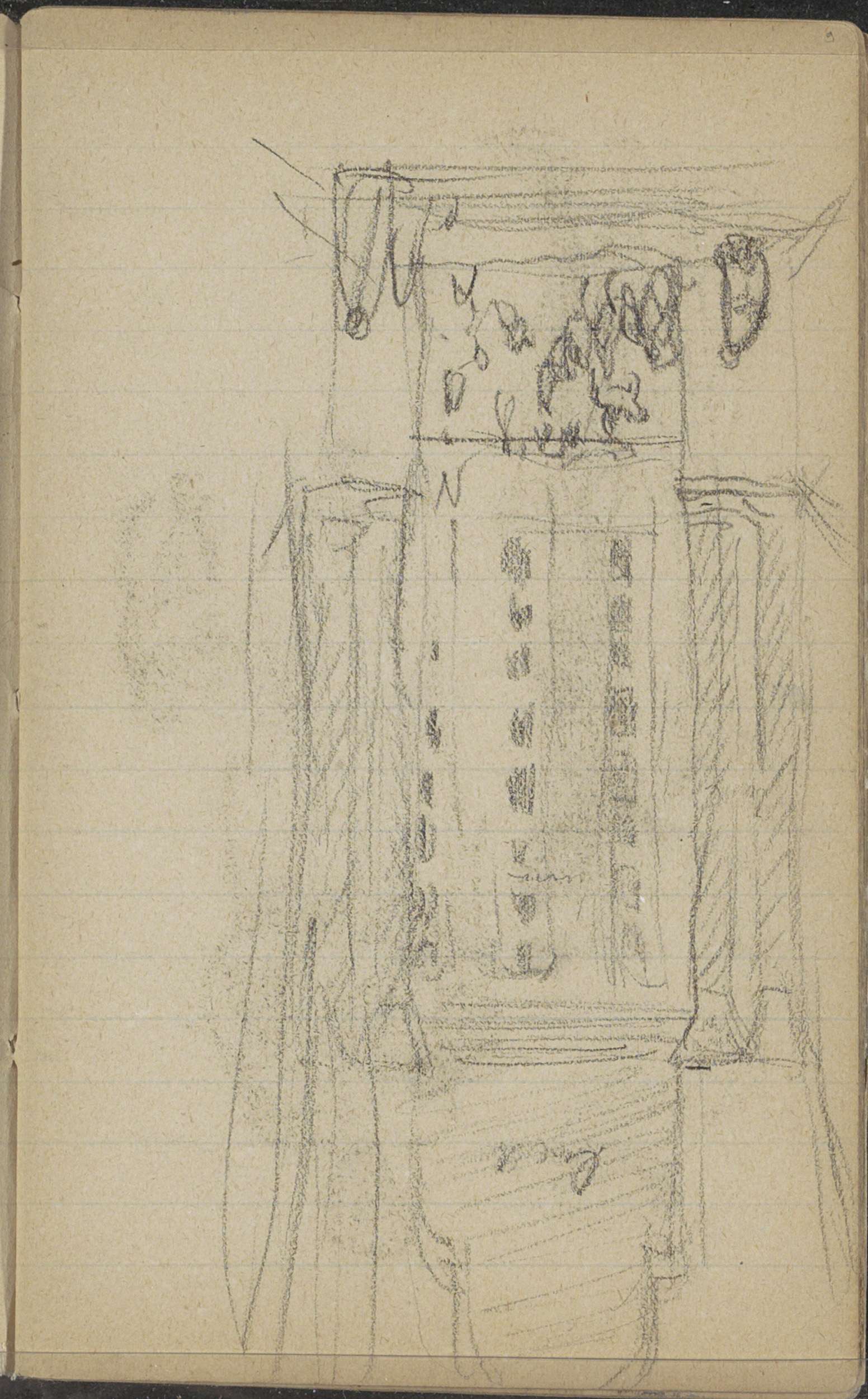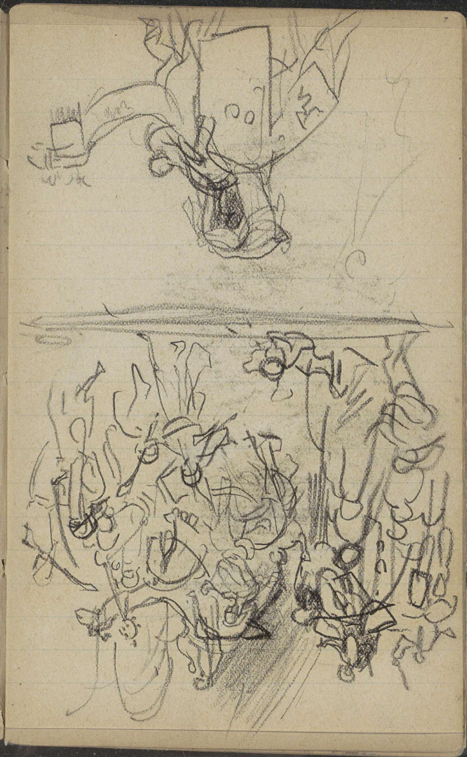 Figuren bij de voorgevel van een gebouw, mogelijk ee...