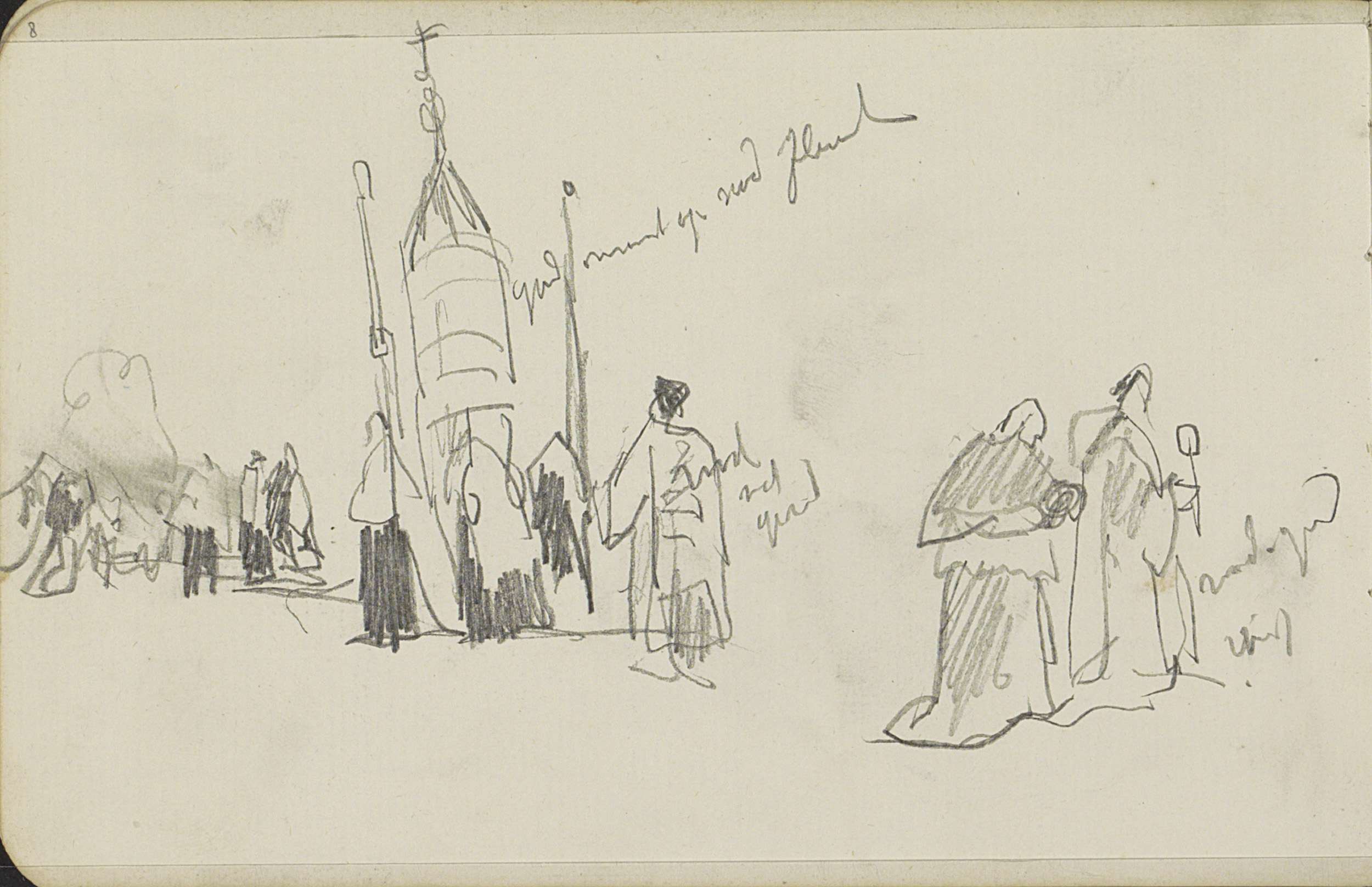 Figuren bij een portaal, mogelijk van de Kait Bey mo...