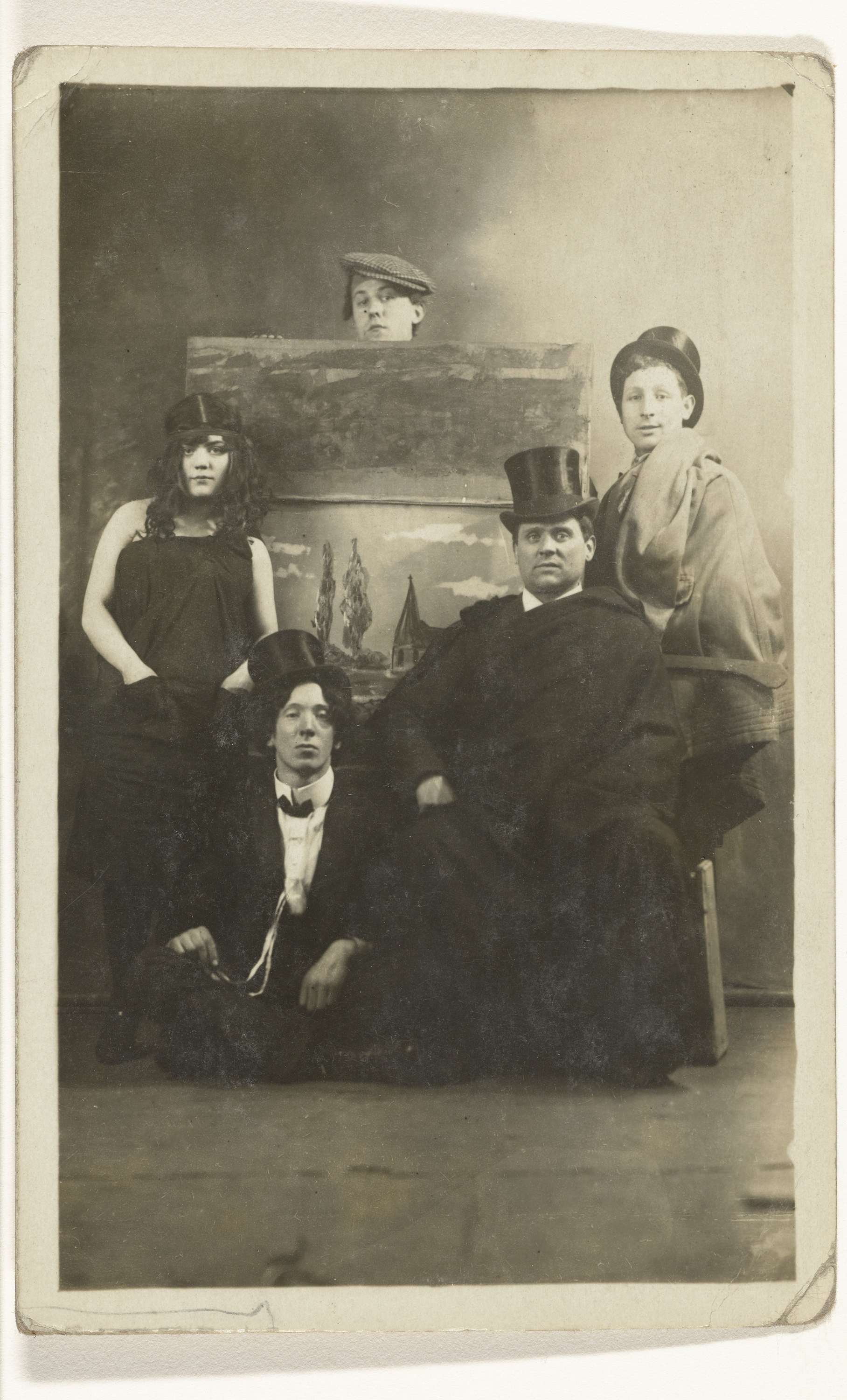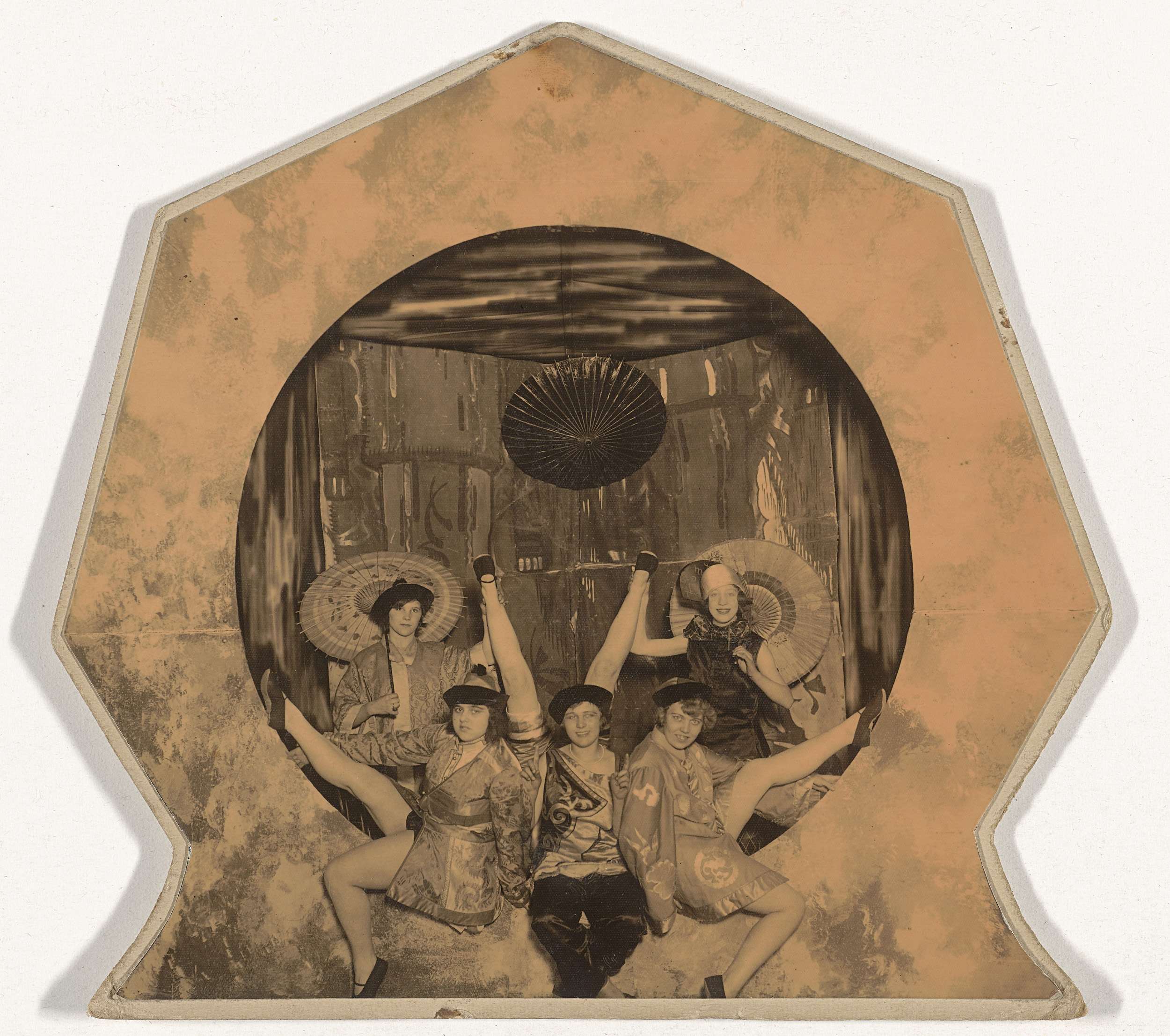 Theatergroepsportret van zes onbekende vrouwen in Az...