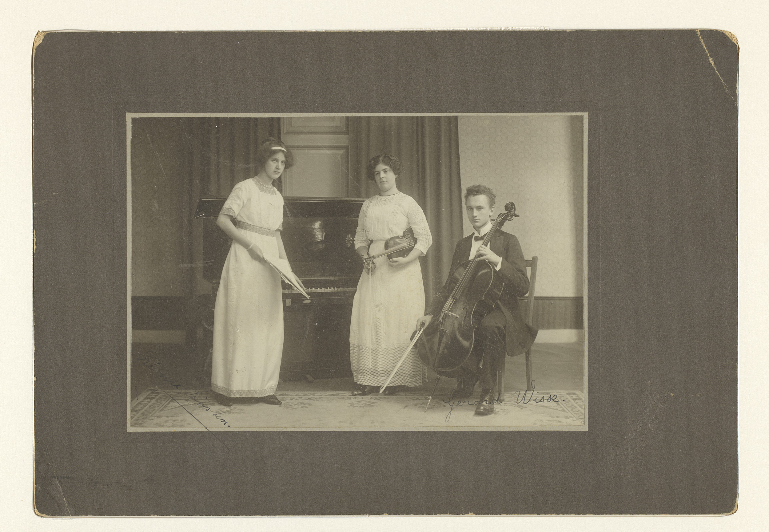Groepsportret van cellospeler Gerard Wisse, een viol...