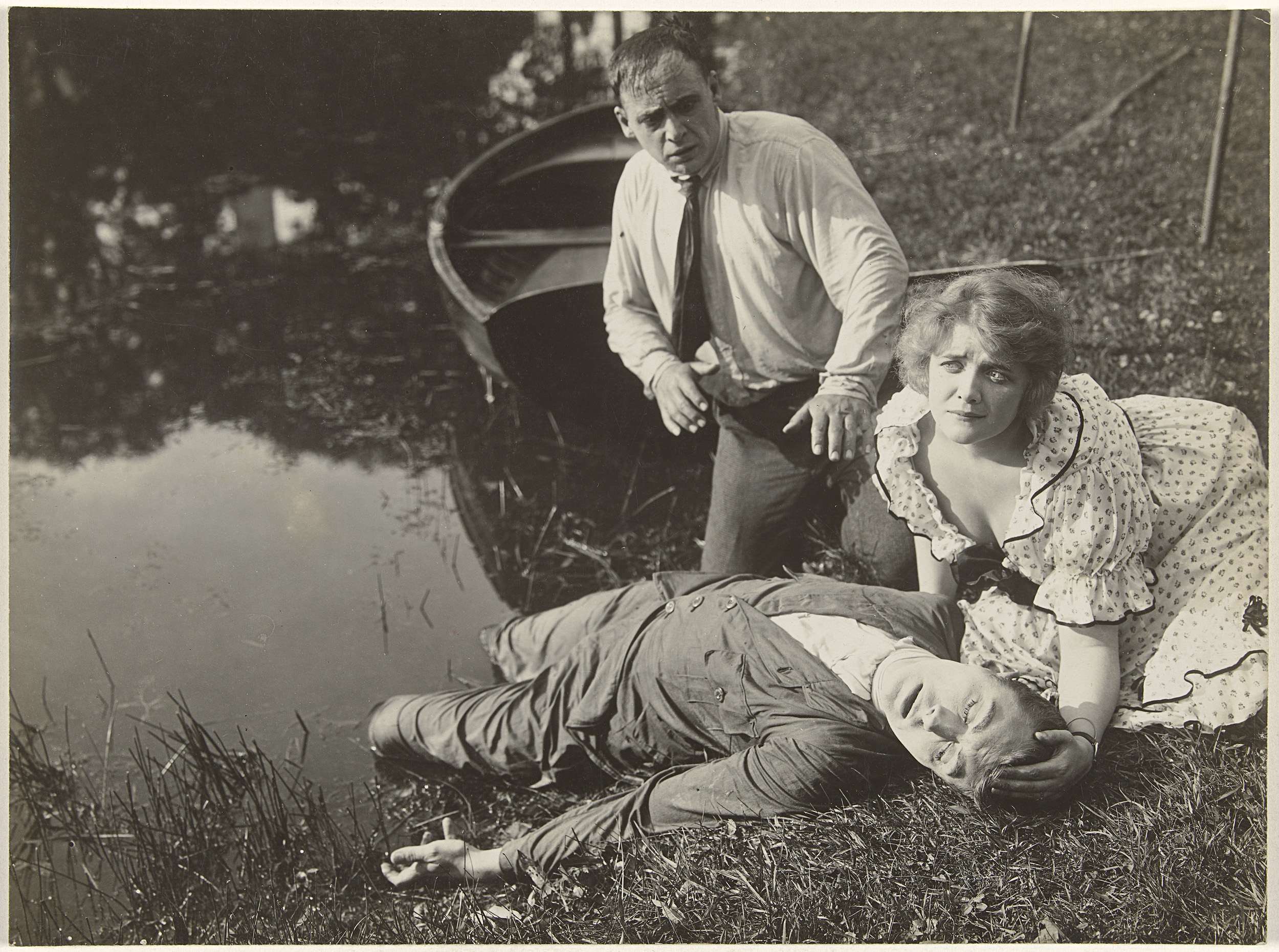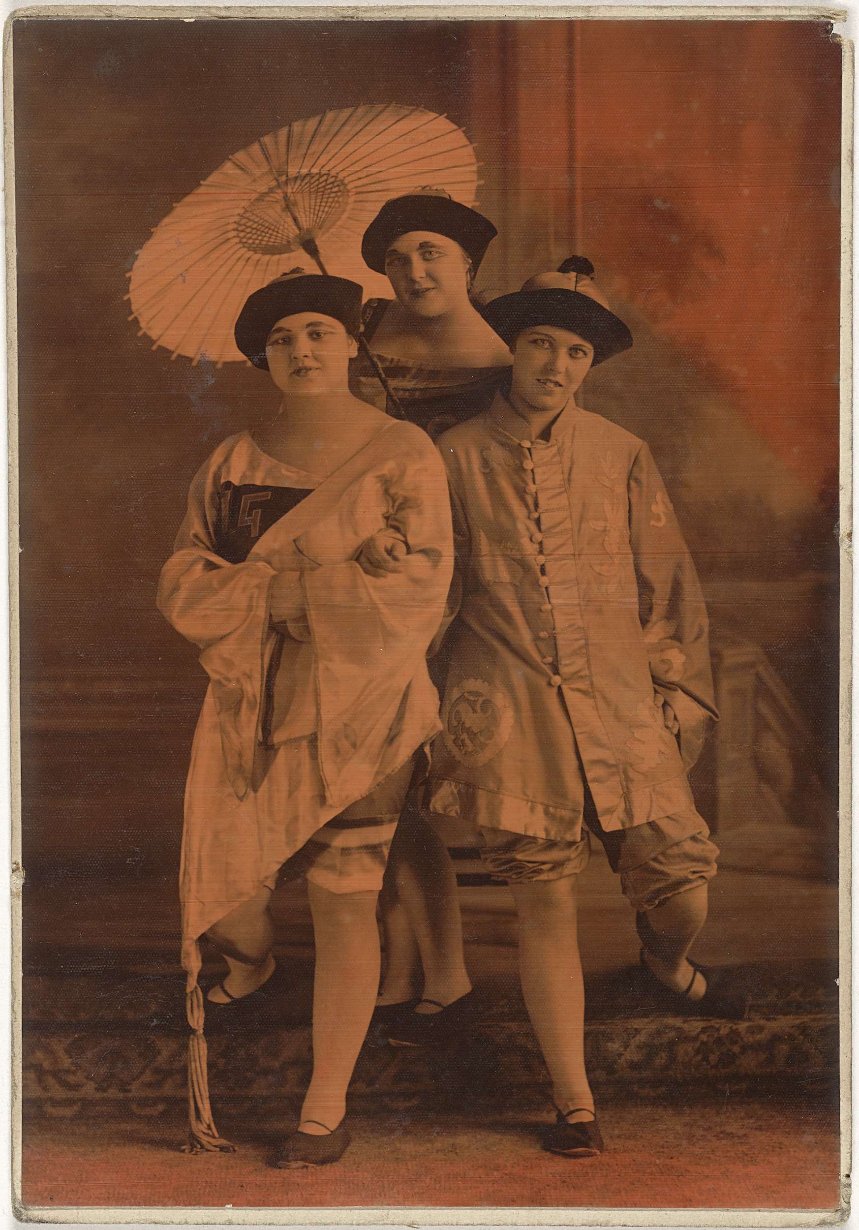 Theatergroepsportret van drie onbekende vrouwen in o...