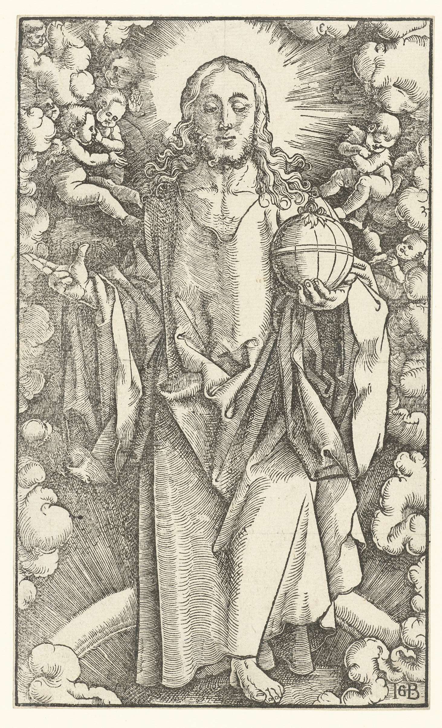 Staande Christus met rijksappel maakt zegenend gebaar