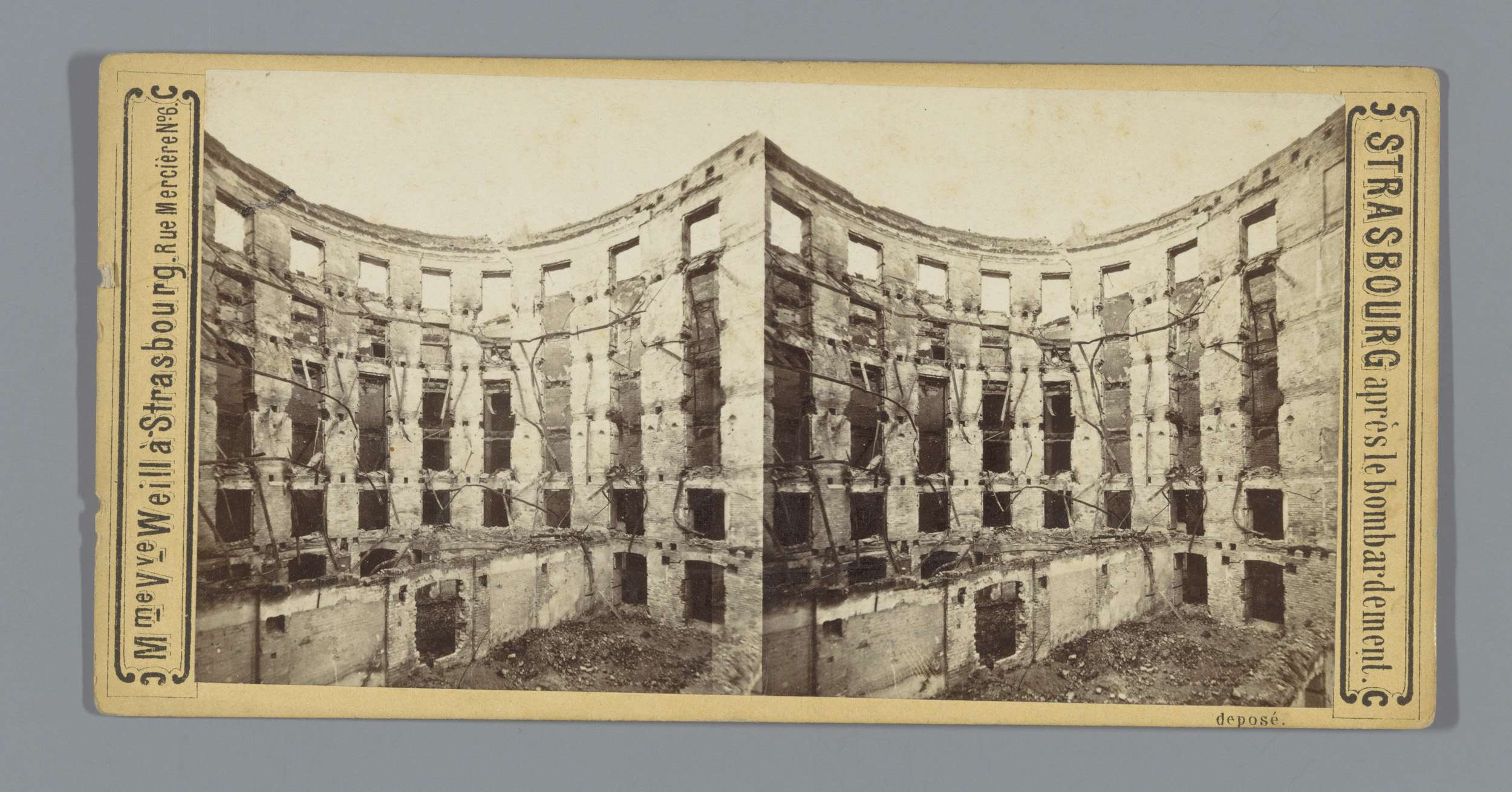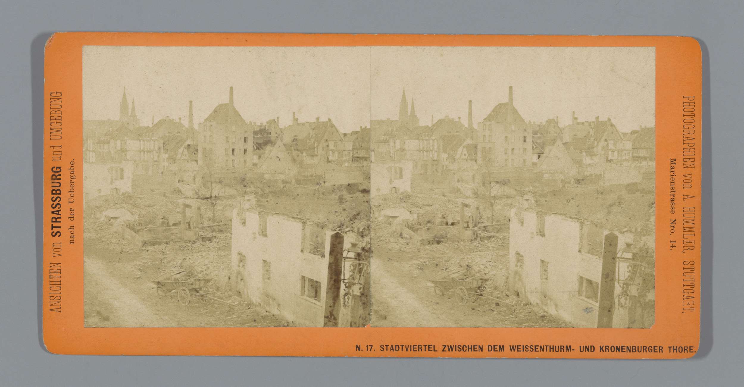 Gezicht op ruïnes te Straatsburg na de bombardemente...