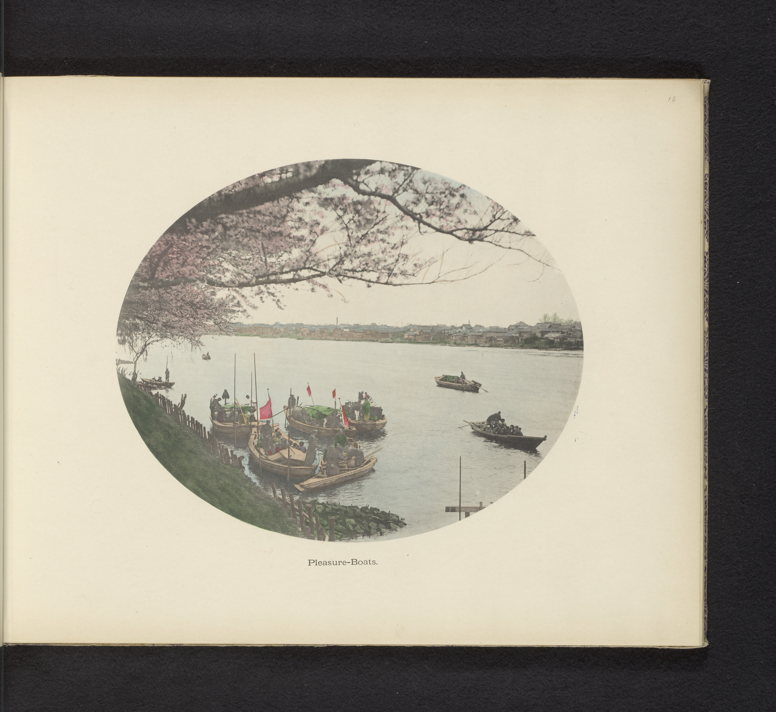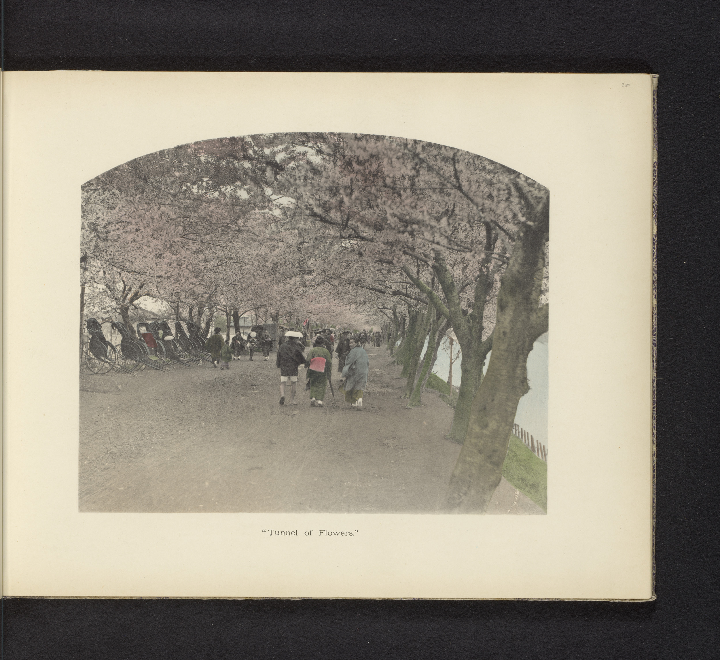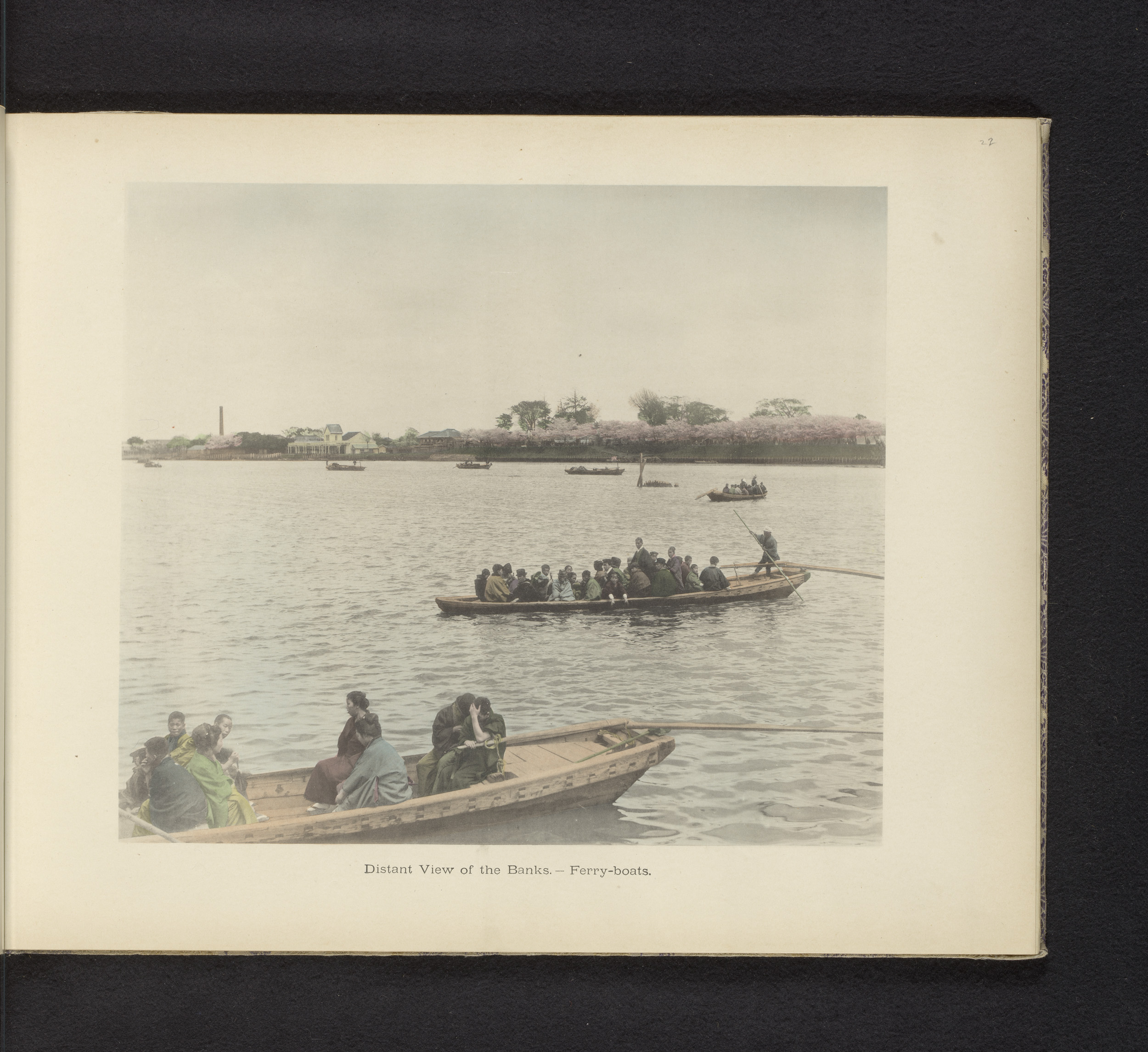 Drie vrouwen, elk in een riksja voortgetrokken door ...