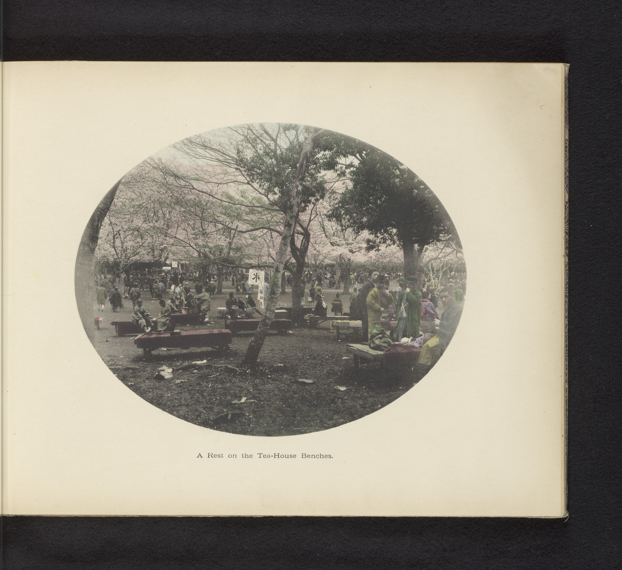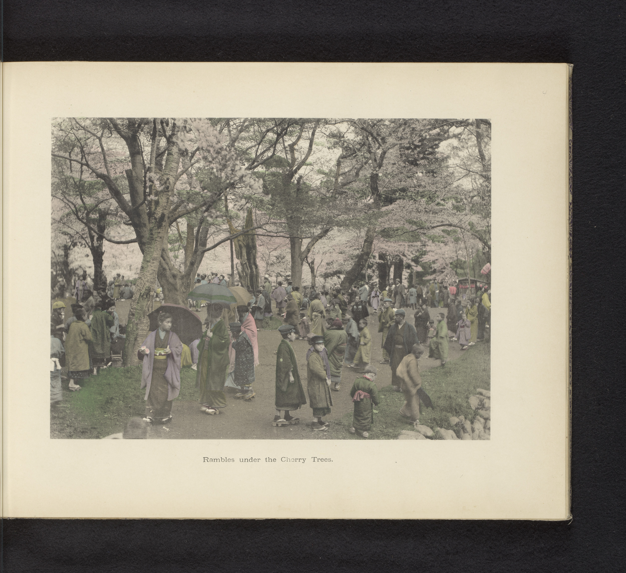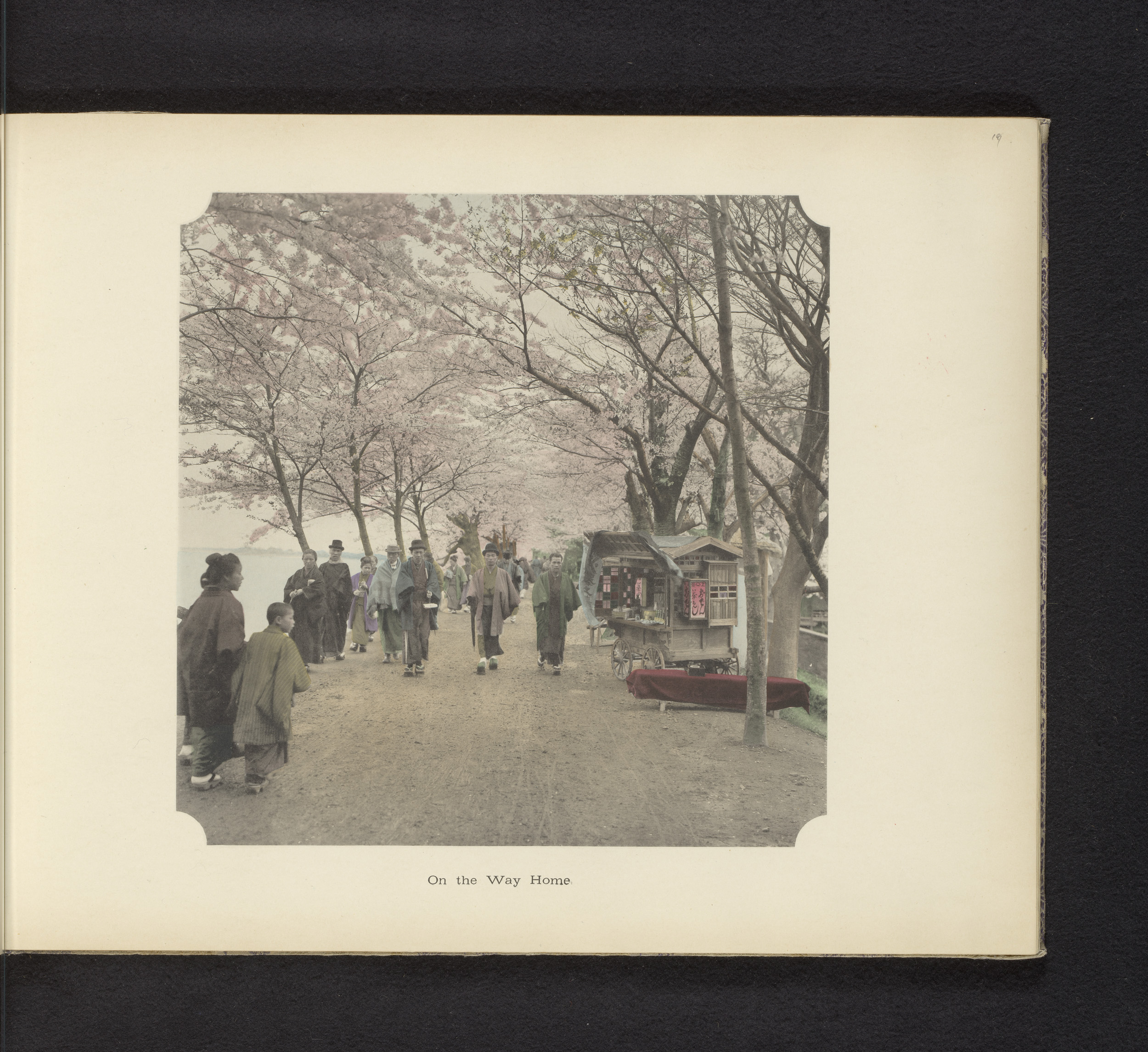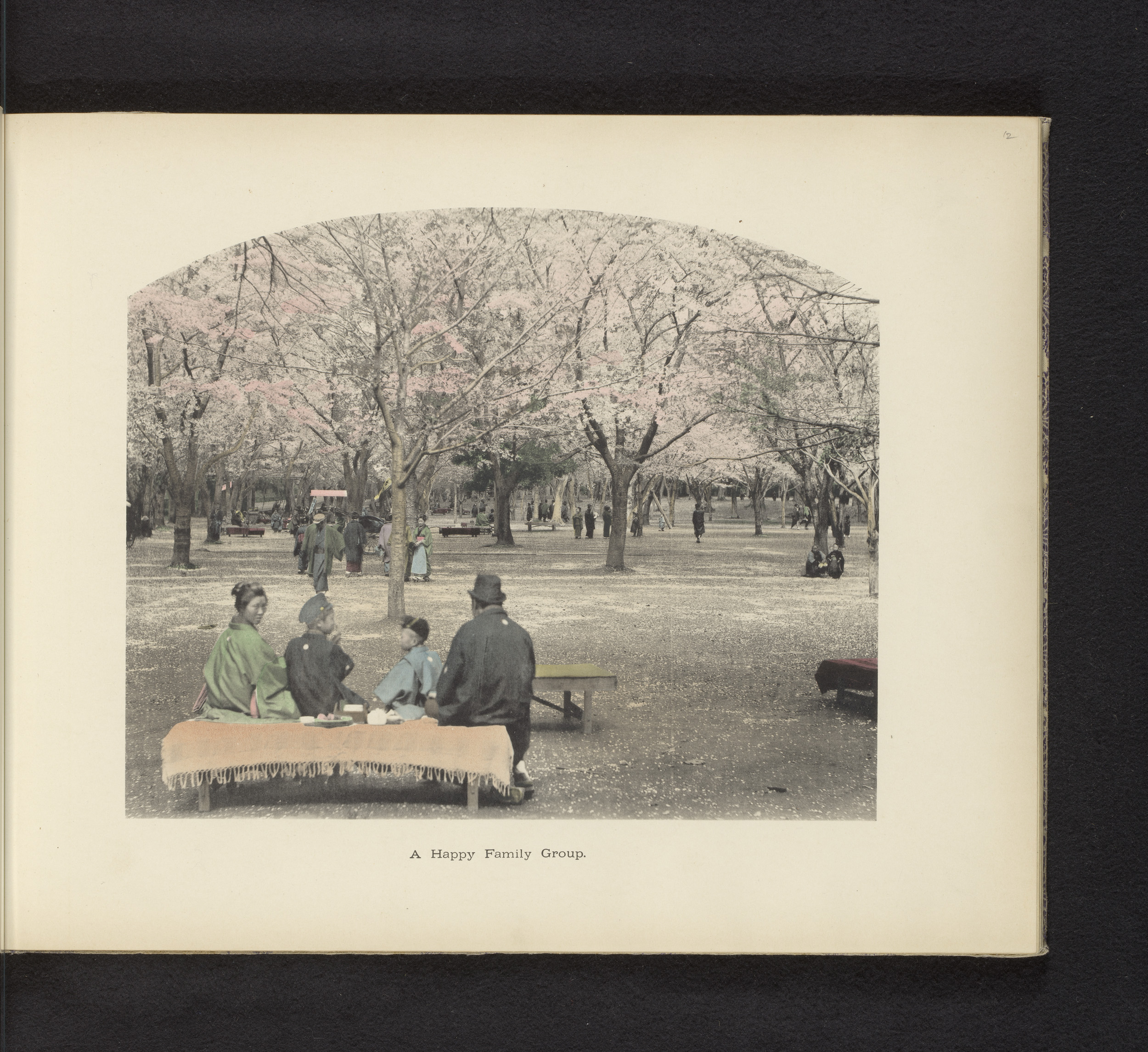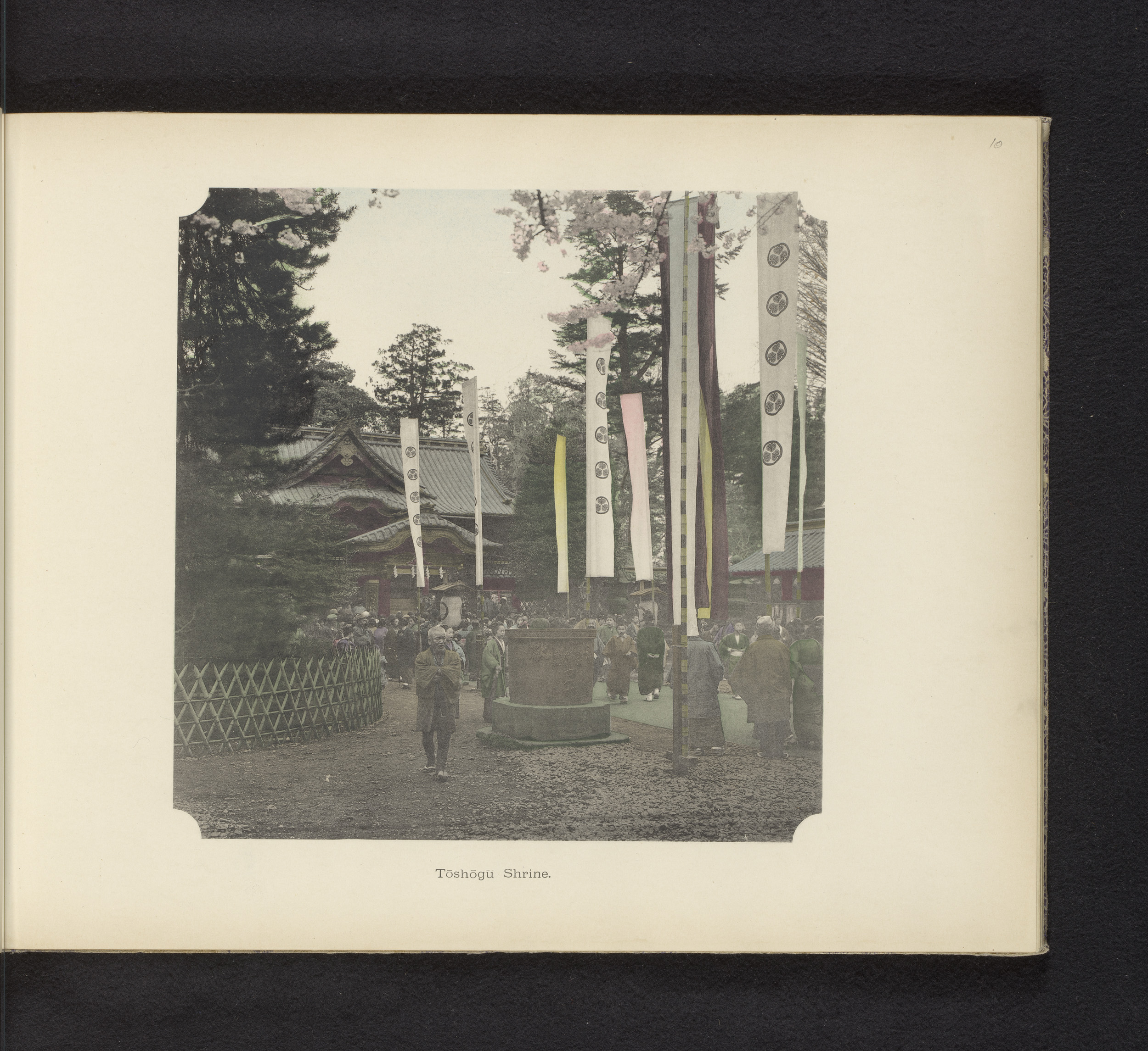 Twee mannen en drie vrouwen bij de Kasuga tempel in ...