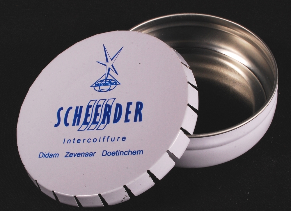 Blikje met tekst van Scheerder Intercoiffure Didam Z...