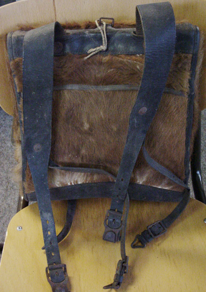 Ransel van canvas met een klep van bont gebruikt bij...
