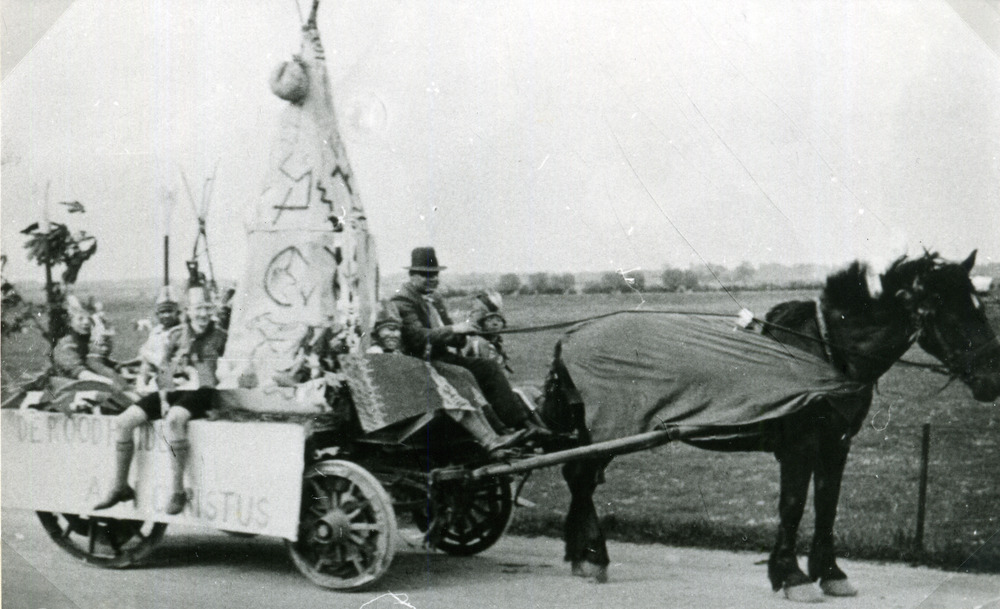 Zwart-wit foto van de Kindheidsoptocht in Herwen ca....