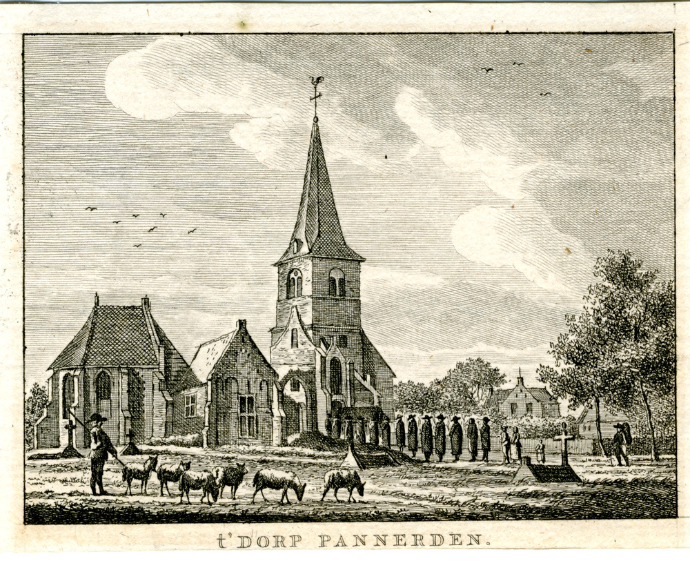 Gravure op papier met de titel 't Dorp Pannerden' do...
