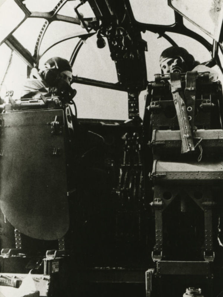 Foto twee piloten in cockpit van Britse Short Stirli...