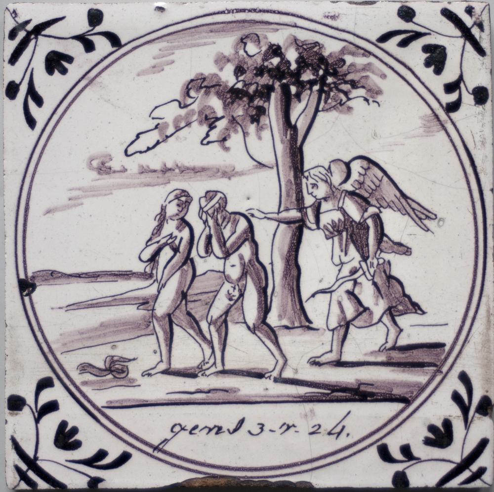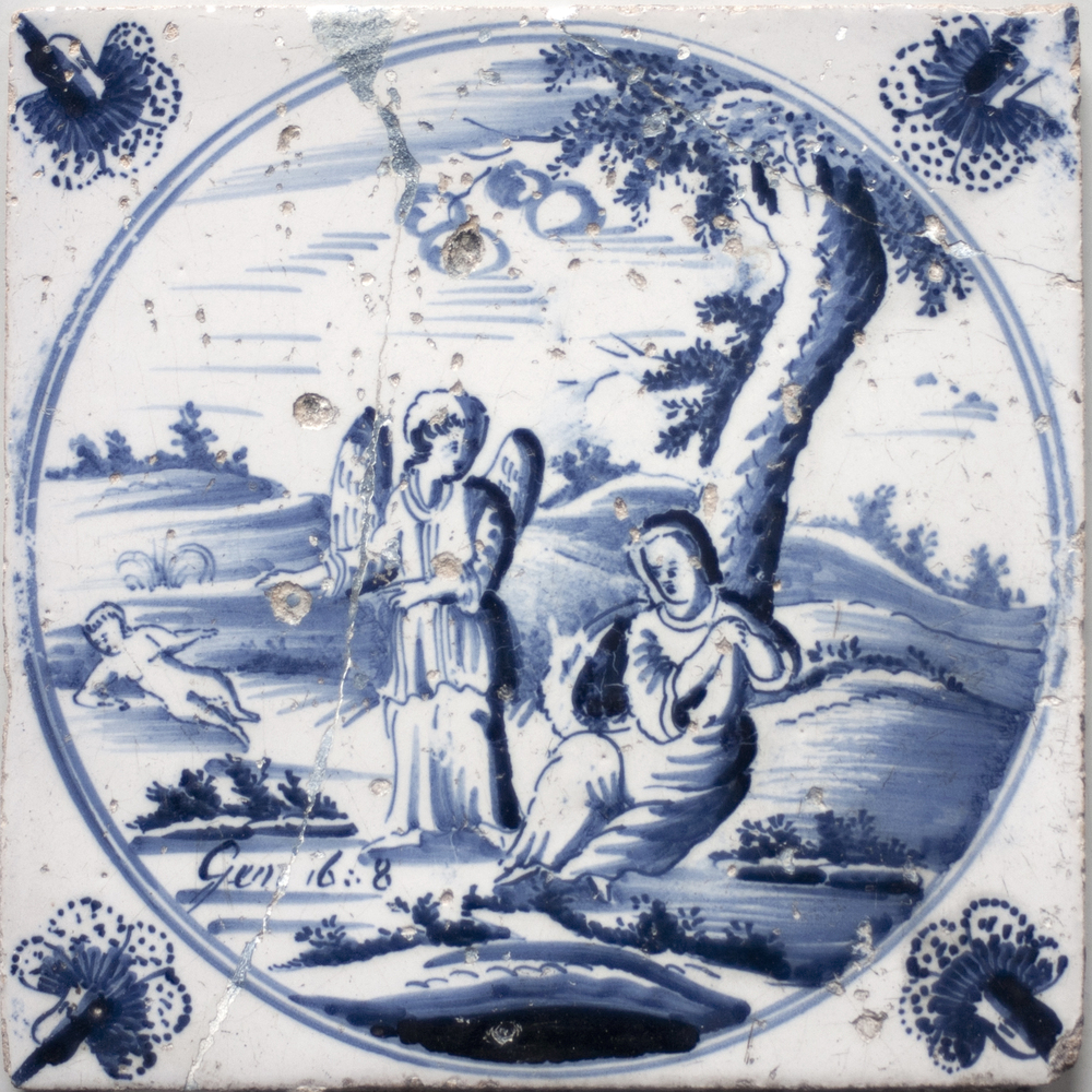 tegel van keramiek met tinglazuur, voorstellende: De...