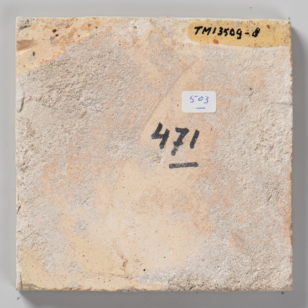 tegel van aardewerk, uitgefreesd, voorstellende: fla...