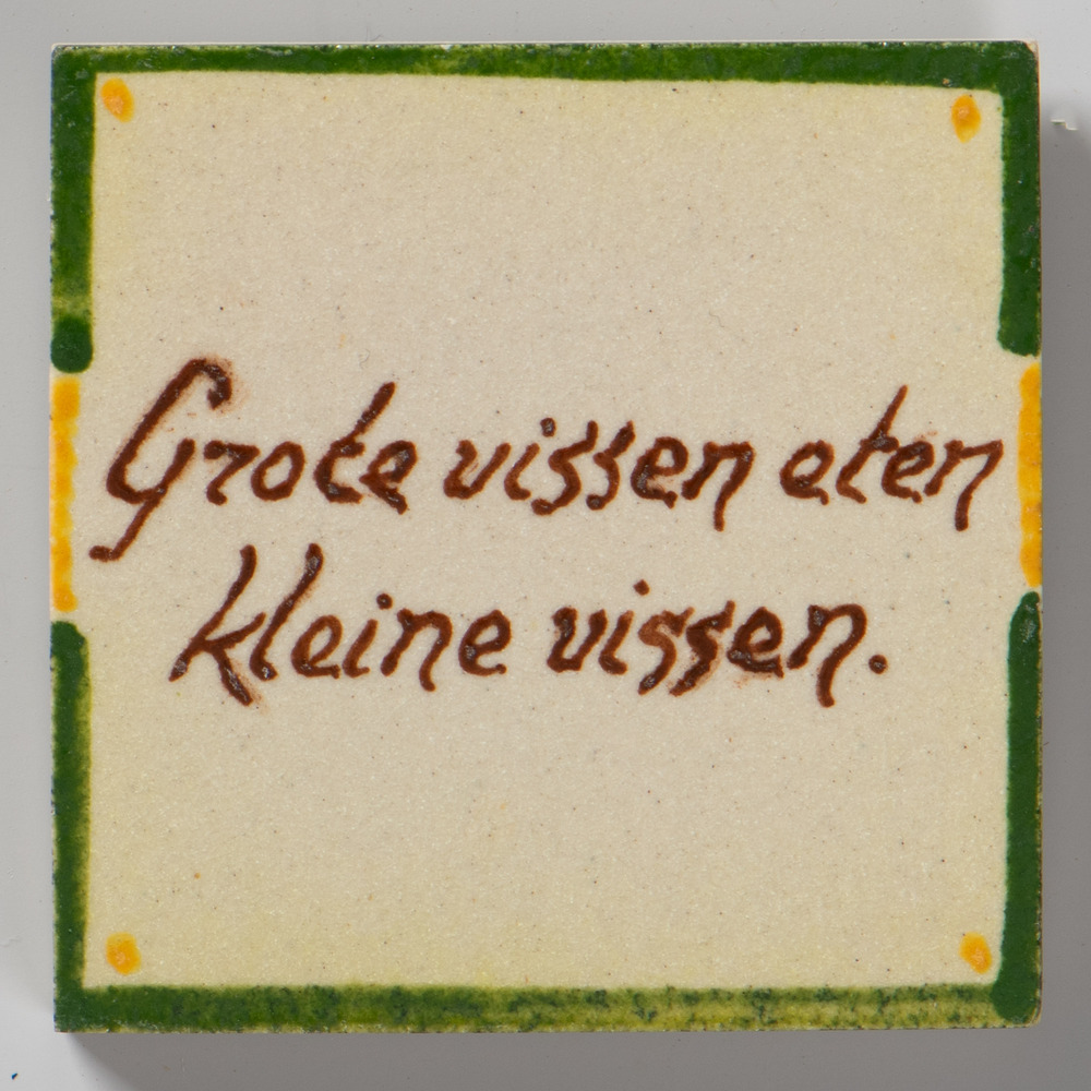 tegel van keramiek in opglazuur, voorstellende: teks...