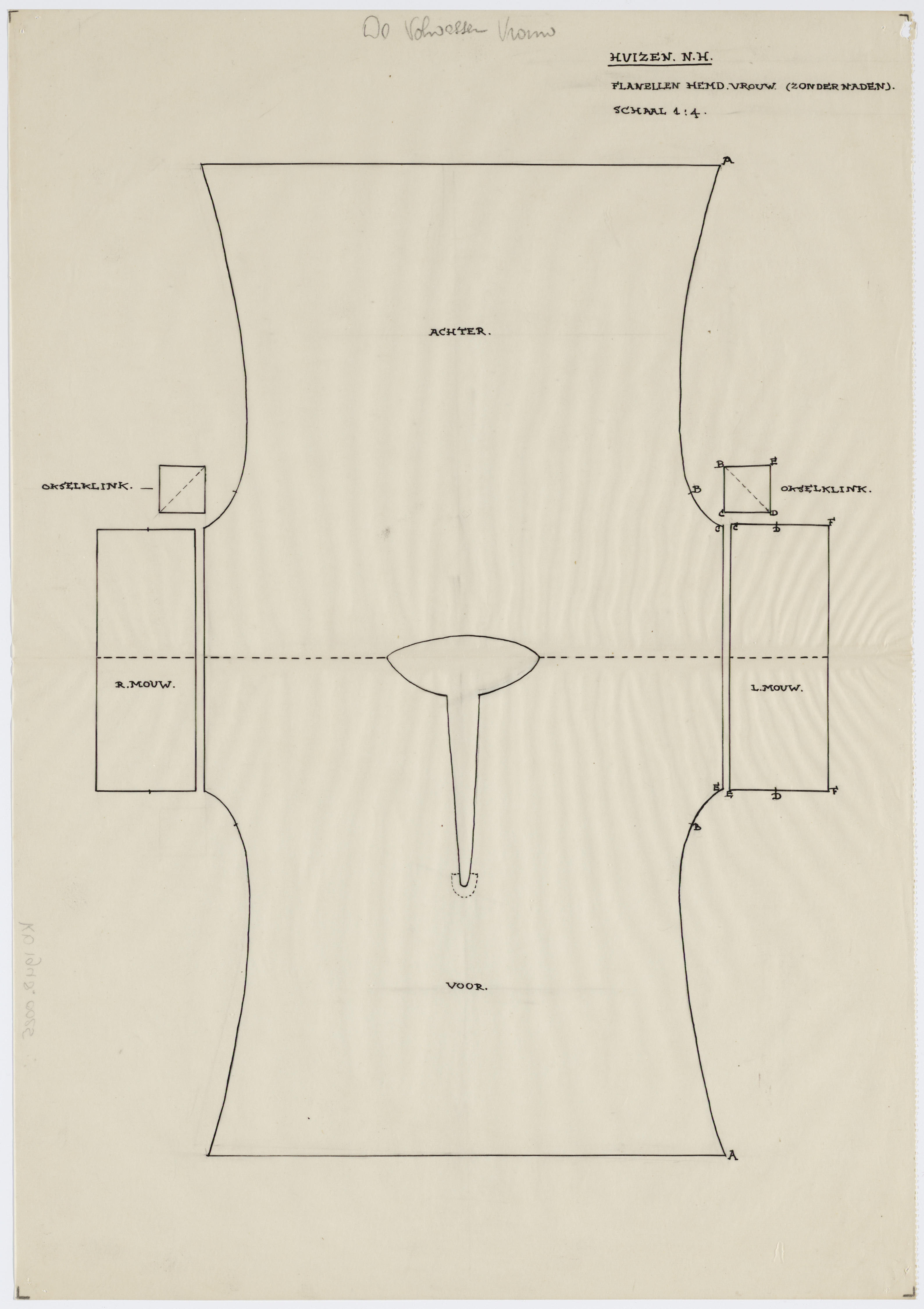 Patroontekening hemd, vrouw Huizen (patroontekening)
