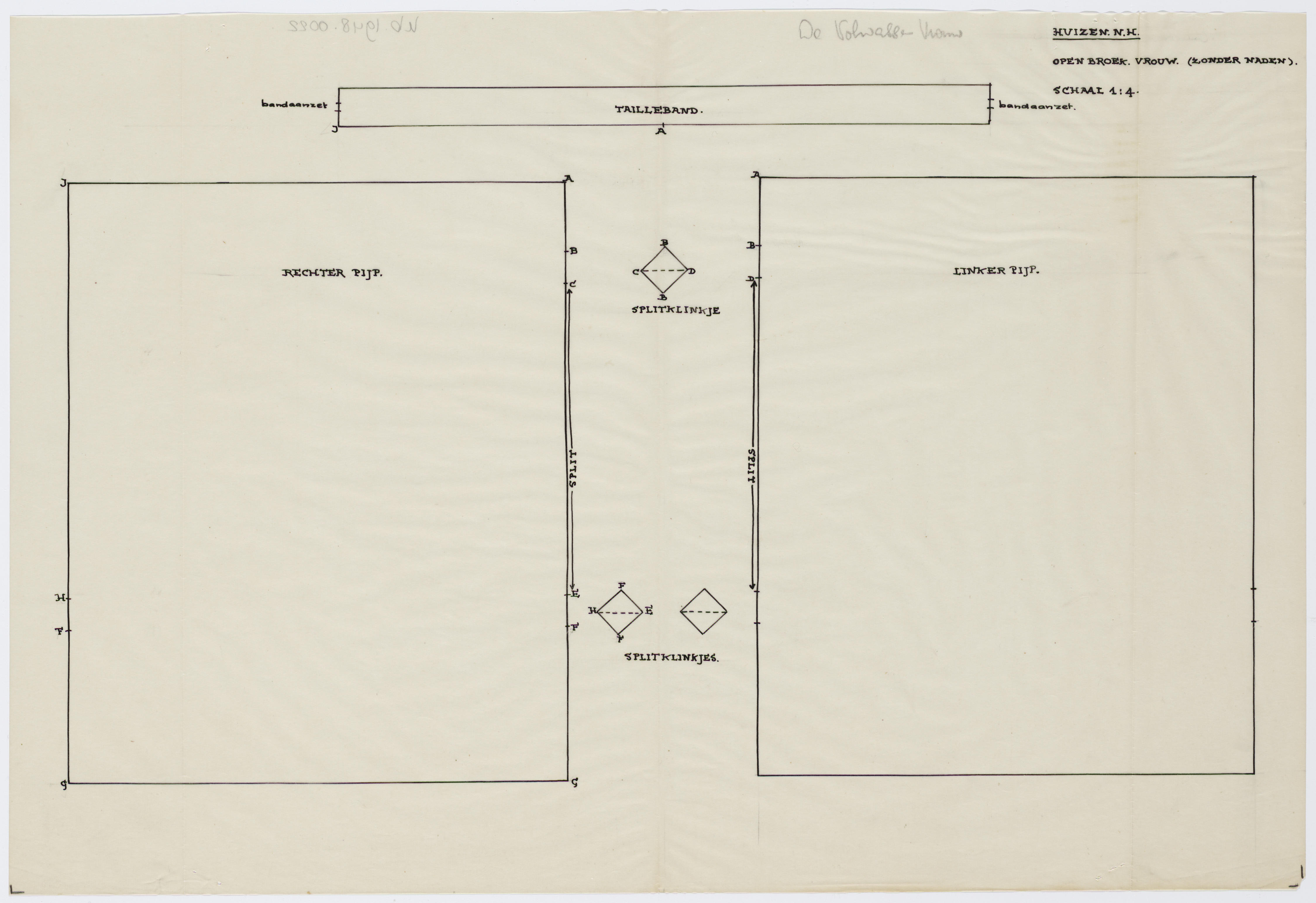 Patroontekening open broek, vrouw Huizen (patroontek...
