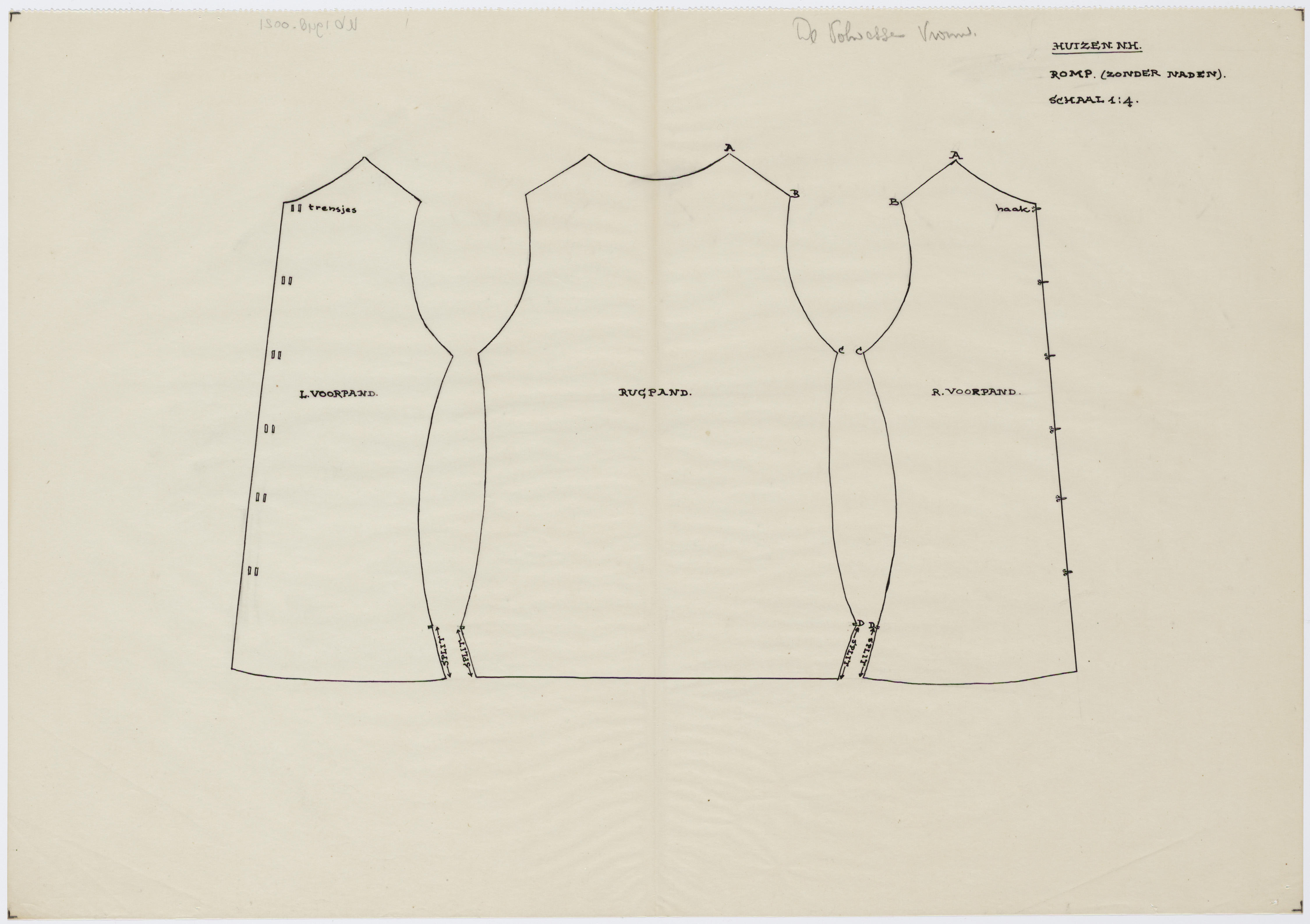 Patroontekening romp, vrouw Huizen (patroontekening)