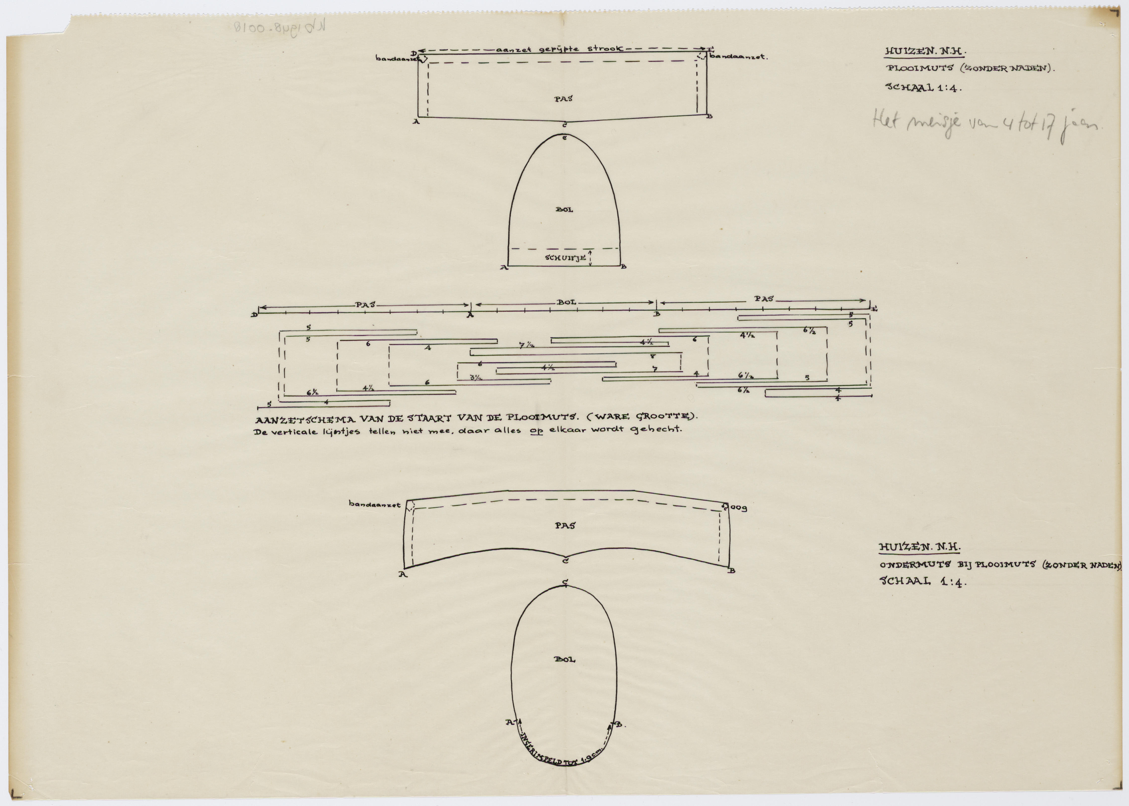Patroontekening plooimuts, meisje Huizen (patroontek...